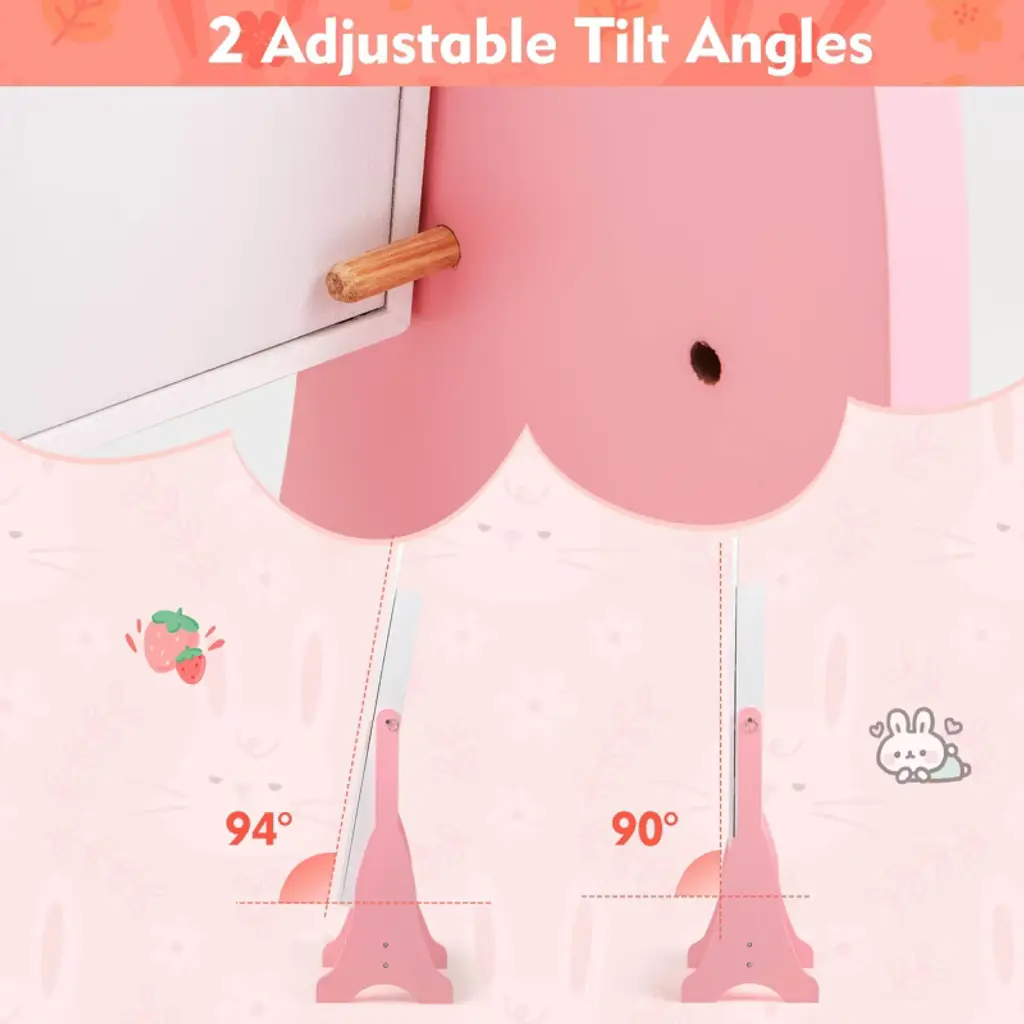 This jewelry cabinet is equipped with anti-tipping devices for added stability and security to keep your child's precious jewelry neatly organized, and has a spacious space with 18 earring slots, 6 necklace and bracelet hooks, 4 storage shelves, 3 bracelet rods and 2 small drawers. In addition, the freestanding full-length mirror with 2 tilting angles provides complete and clear reflection, perfect for everyday dress inspection.Color: White Material: MDF + Glass Product Sizes: 13.5" x 12" x 45" (W x D x H) Net Weight: 16.5 lbs Package Includes: 1 x Kids Jewelry Cabinet 1 x Instruction