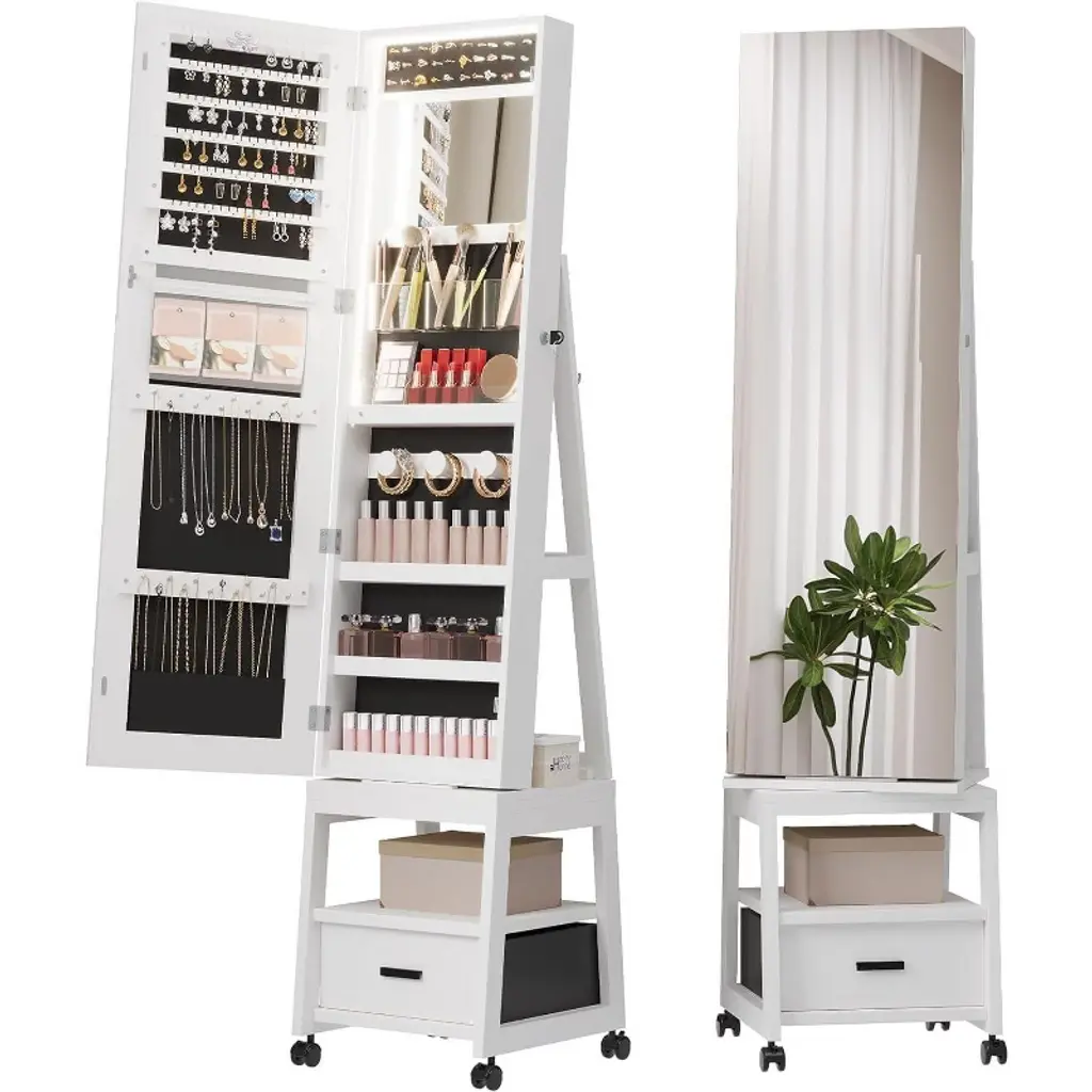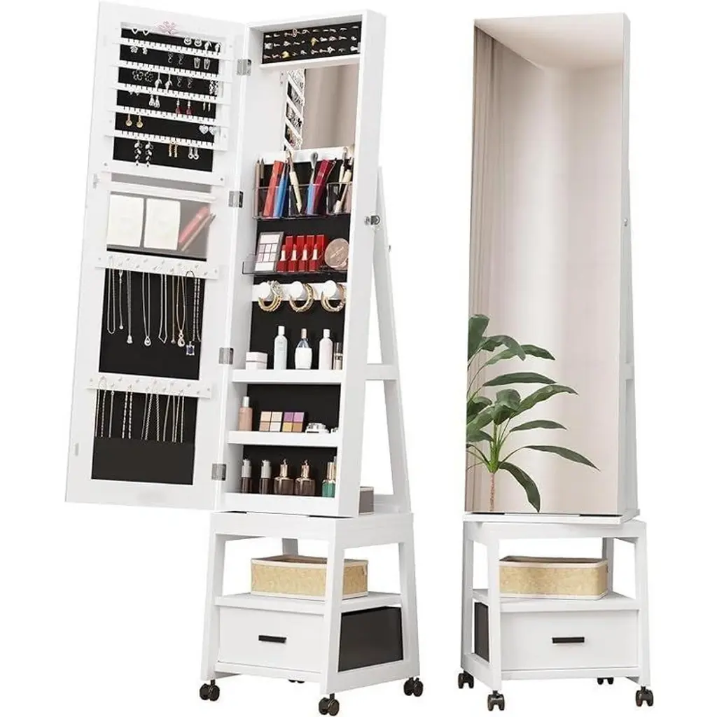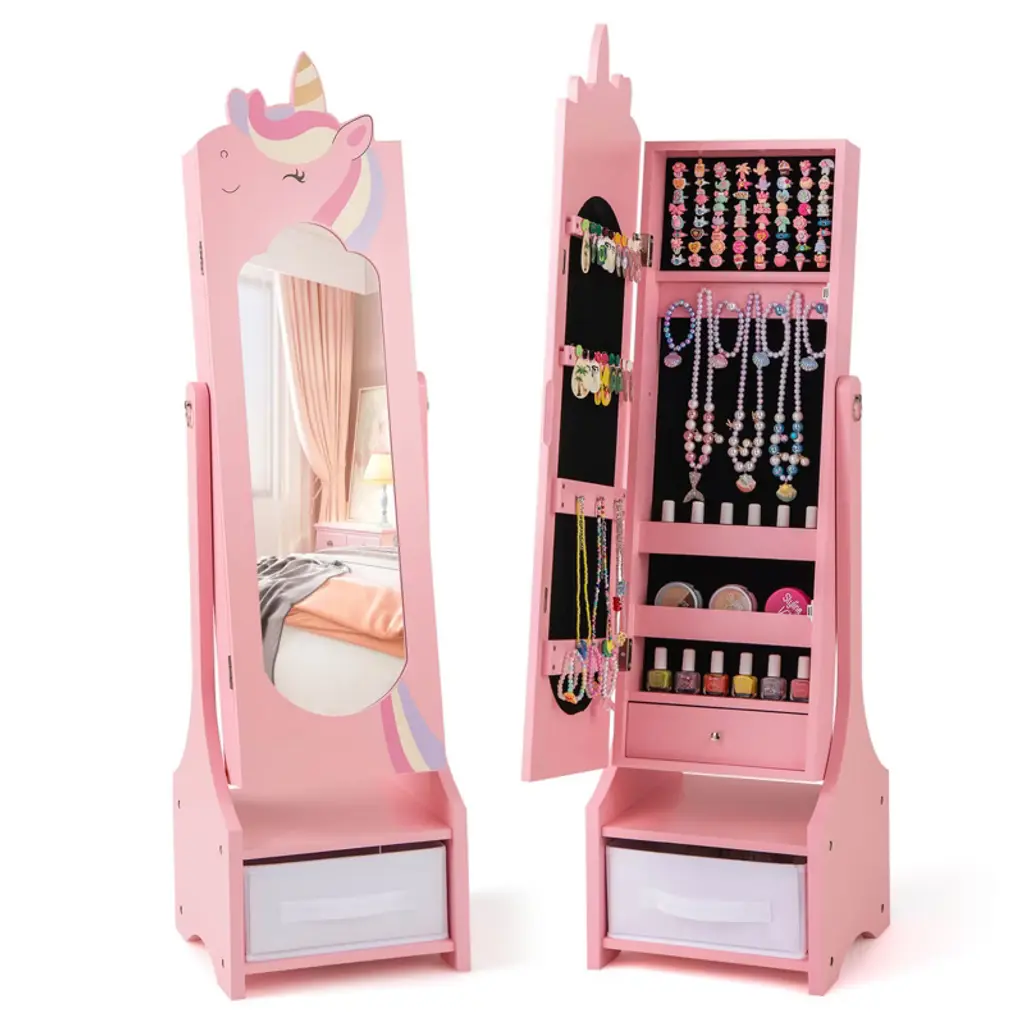 Infans Kids Jewelry Cabinet Standing Children Jewelry Organizer With Full-length Mirror