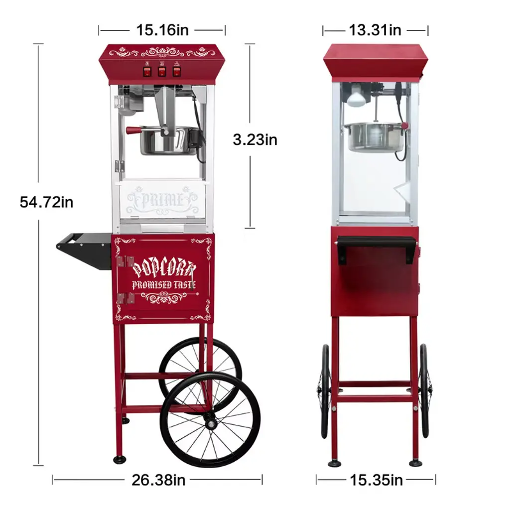 Infurnic Popcorn Poppers, With Cart, Kitchenware For Family Gatherings, Red, 26.38"*15.35"*54.72"