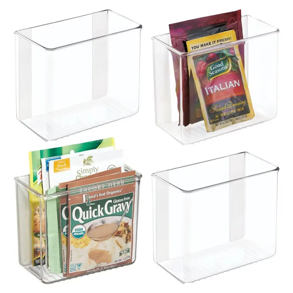 The Spice and Seasoning Packet Storage Tray is great for making your favorite flavor packets more manageable and easy to find when preparing meals. This cabinet shelf organizer features clear plastic construction to keep packets visible, a built-in divider to separate and better organize packets, and storage space to hold up to 20 standard size flavor packs.Highlights:Clear plasticNon-skid feet on bottom to prevent slidingIdeal for storage for gravy and seasoning packetPerfect for also holding recipes, receipts, spice jars or bottles