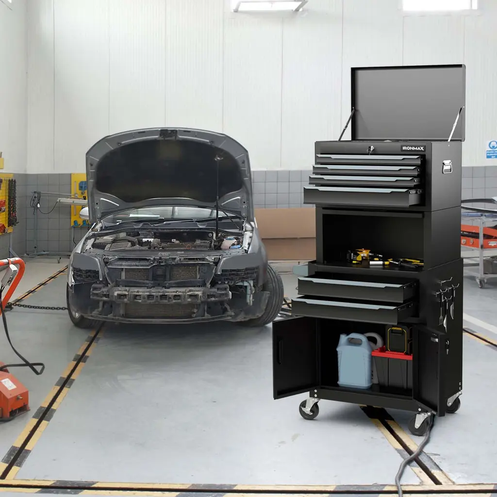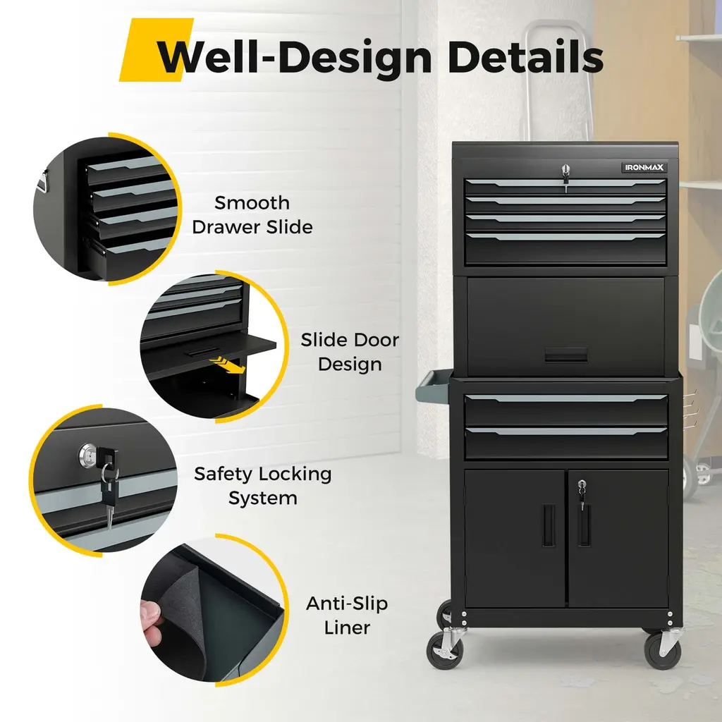 Ironmax 6-Drawer Rolling Tool Chest 3-In-1 Heavy-Duty Storage Cabinet - See Details - Black