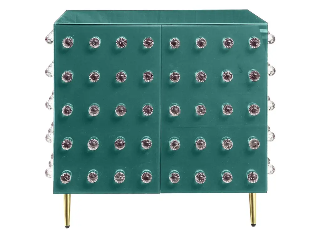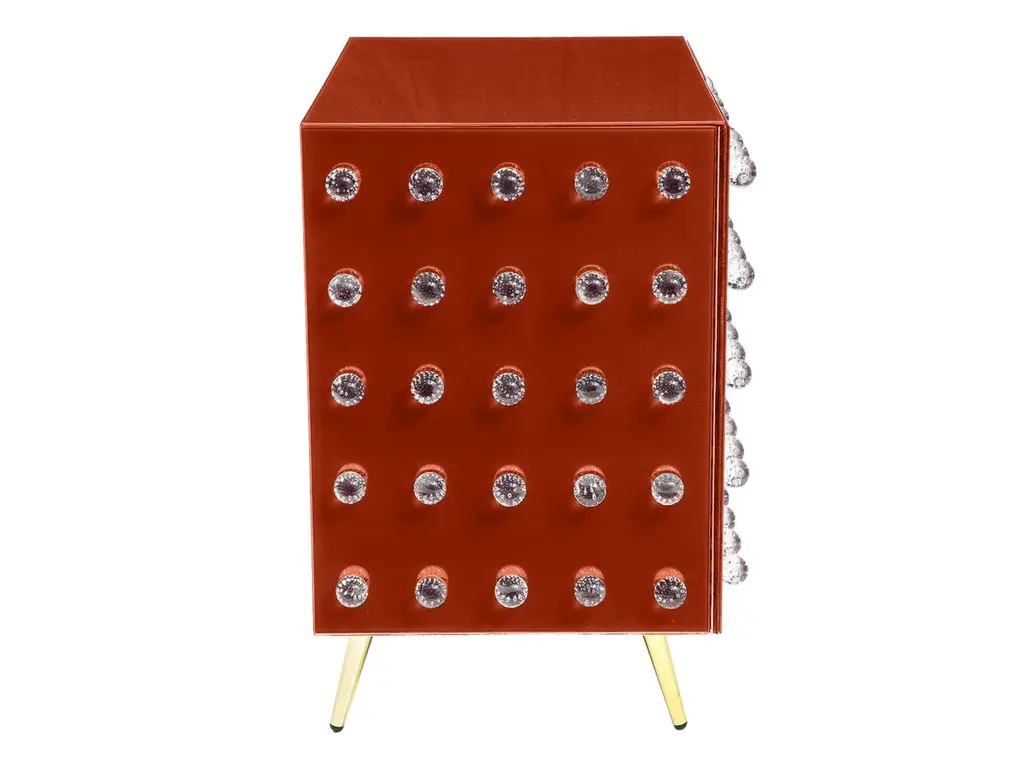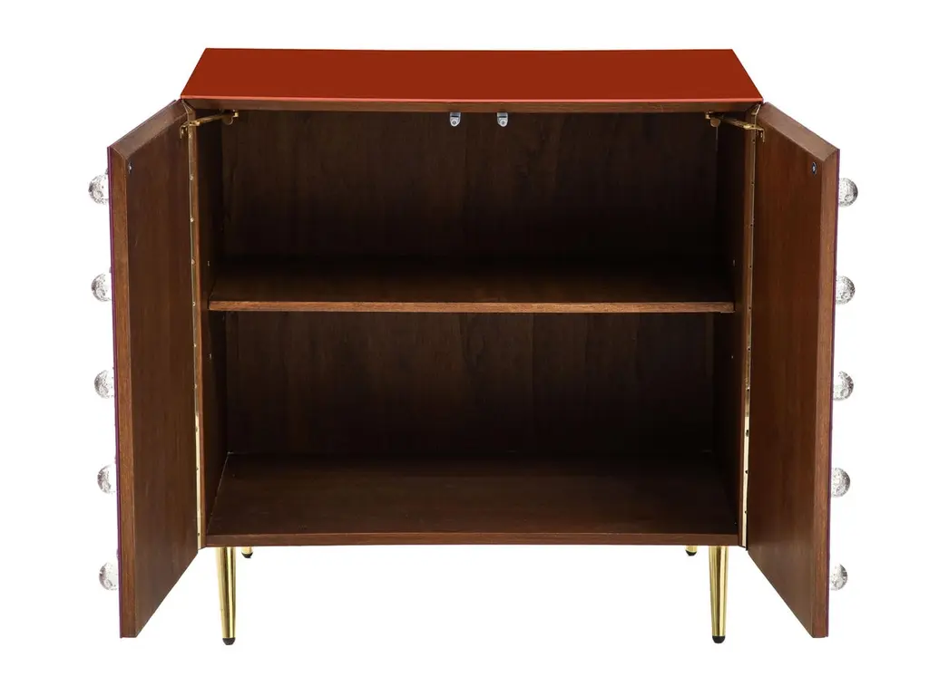 This handcrafted Italian pantry cabinet is a stunning mid-century modern design featuring vibrant orange panels and ninety Murano glass spheres. Made of solid birch wood, it is a demonstration of fine Italian craftsmanship. The furniture's clean lines and geometric shapes embody mid-century style, emphasizing functionality and innovative materials.The orange Murano glass panels are true works of art, meticulously crafted by Venetian artisans using traditional glassblowing techniques. Handcrafted for you in Italy. Use it as a pantry or luxury centerpiece for your home.