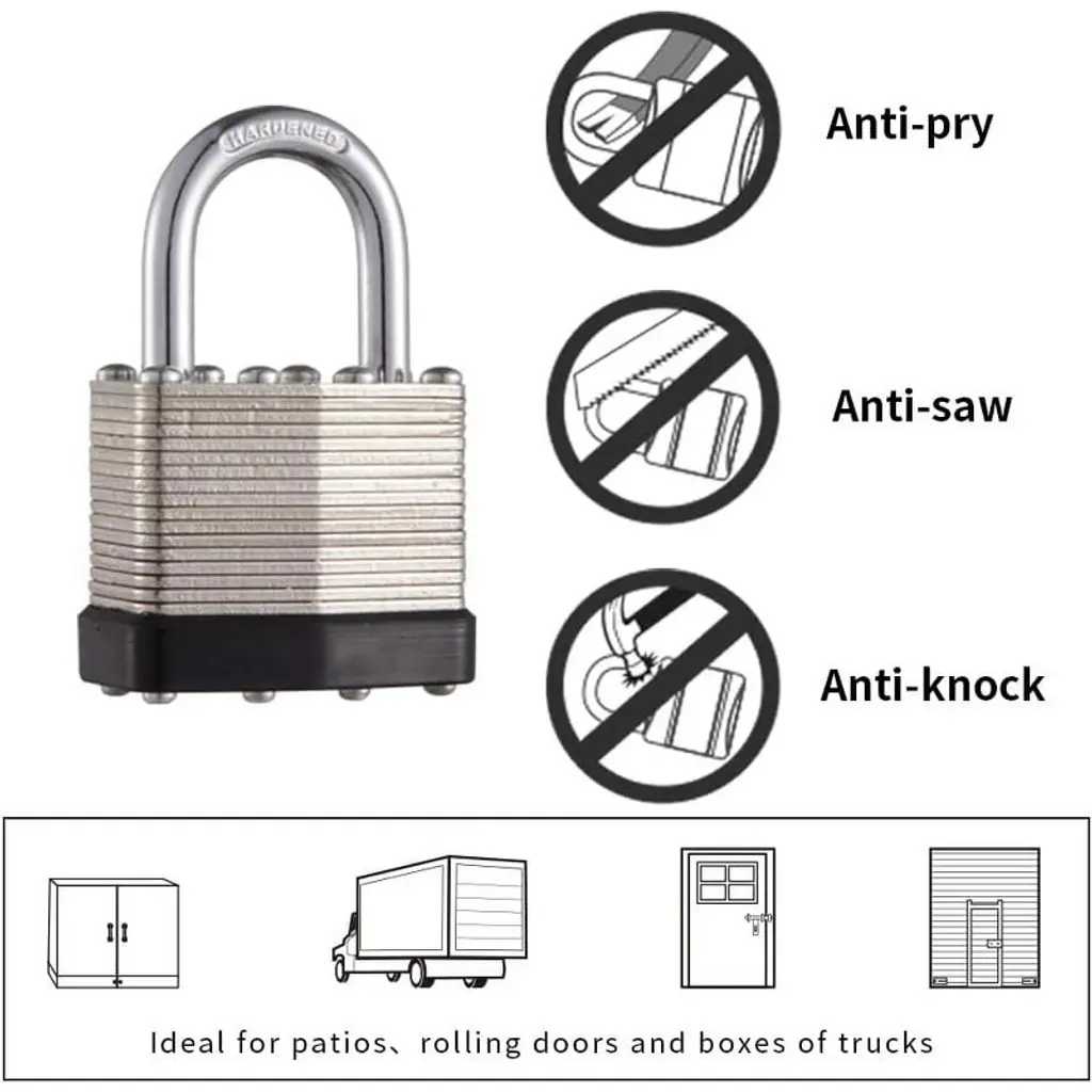 Discover our pack of 12 padlocks, perfect for enhancing security in multiple settings. Each set comes with keys that are alike, and every lock has 2 keys, making it easy to manage. Crafted from nickel - plated steel with a brass core and 4 - pin tumbler, these padlocks are resistant to tampering and weather, ensuring smooth and long - lasting performance. The hardened steel shackle can withstand long - term use and cutting attempts. With a unique design of a steel layer bound by 8 solid steel stakes and a double - locking lever mechanism, they offer top - notch security. Whether it's for your residential gates, fences, sheds, workshops, or storage lockers, these padlocks are the ideal choice. They can also be used on tool boxes, cabinets, backpacks, and more, bringing convenience and security to your daily life.