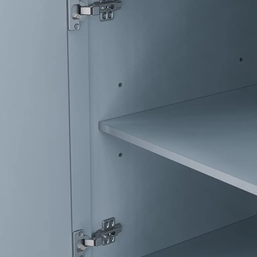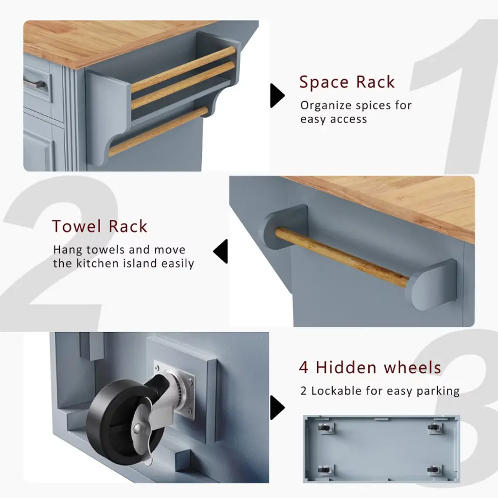 Jujabu 54'' Large Kitchen Island With Rubber Wood Drop Leaf, Rolling Cart With Embossed Texture, 4 Wheels, 4 Doors & 3 Drawers, Grey Blue