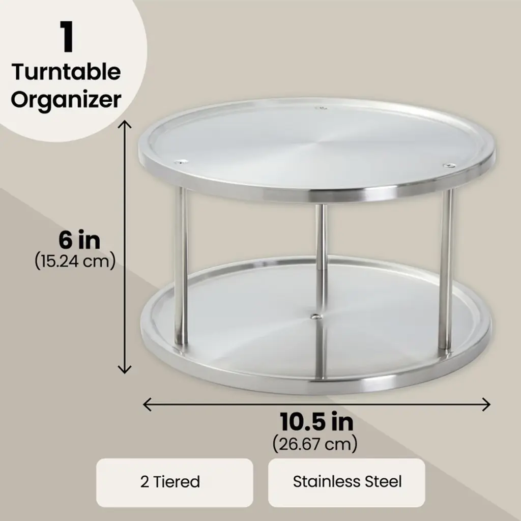 Juvale Lazy Susan Organizer For Cabinet, 2 Tier Spice Rack, Kitchen Supplies, Stainless Steel, 10.5 In