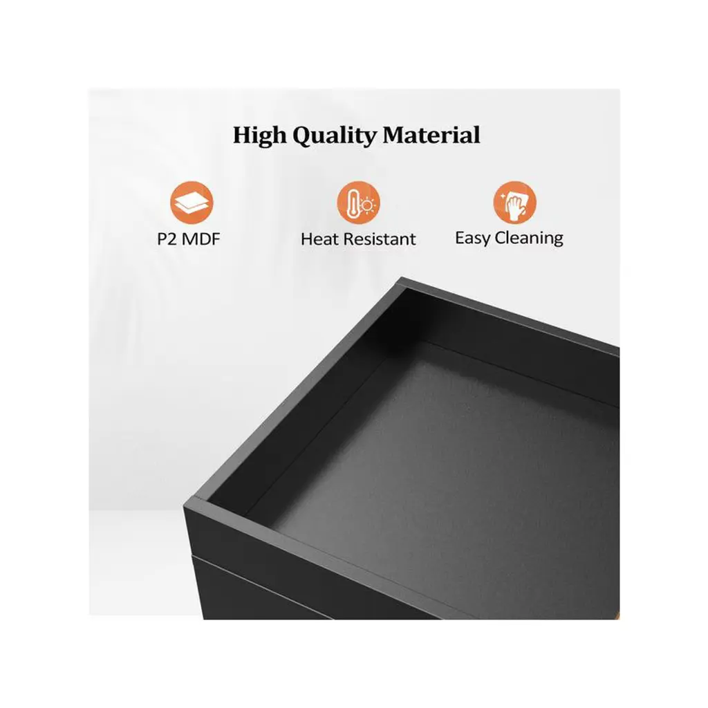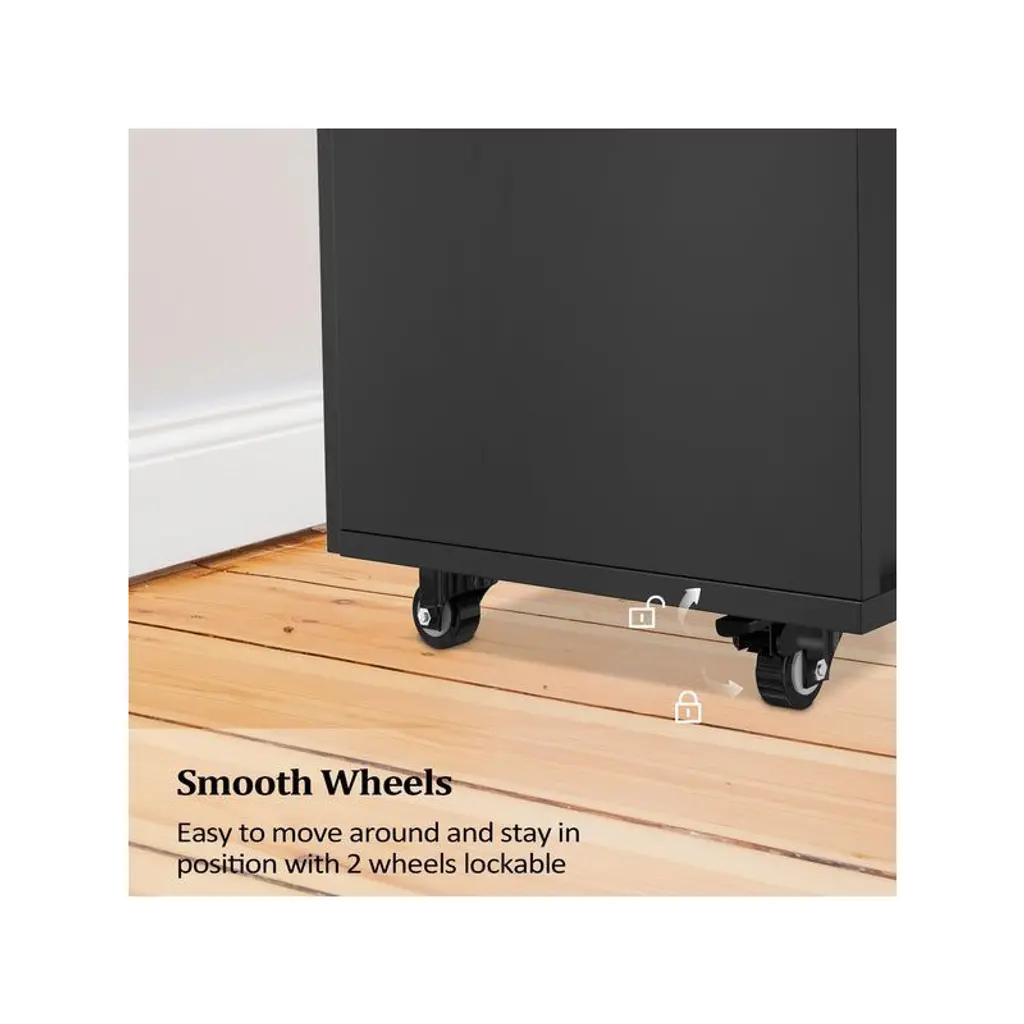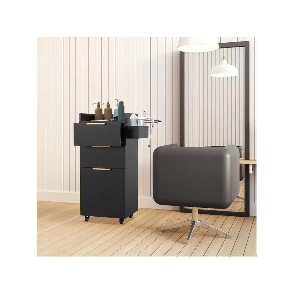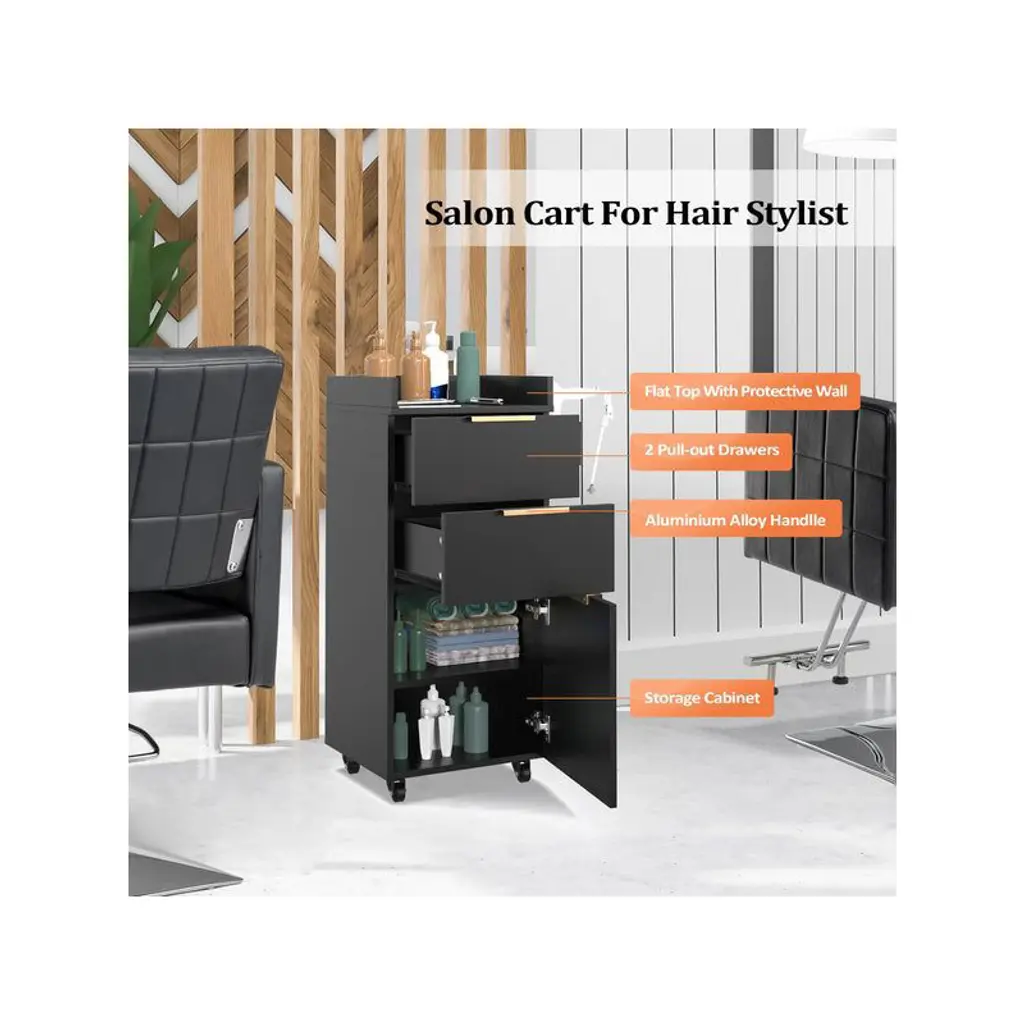 Karl Home Black Wooden Mobile Salon Trolley Cart With Wheels And 2 Drawers