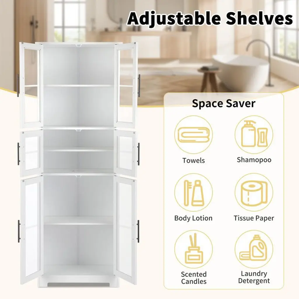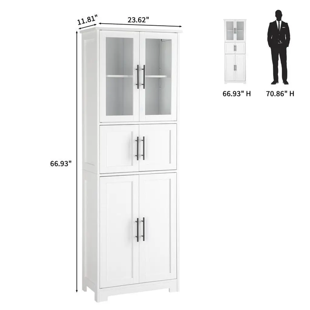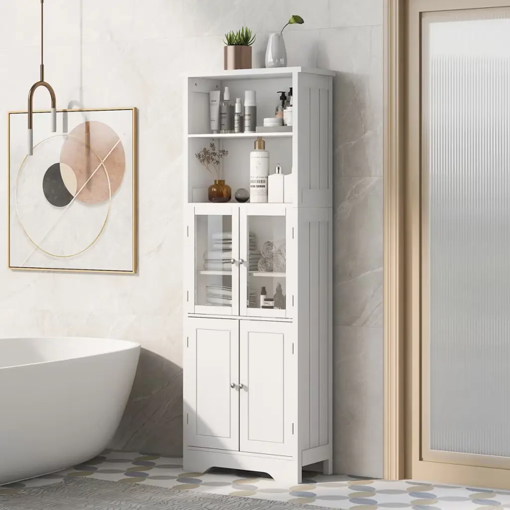 Featuring a pristine white color and simple, sophisticated design, this bathroom cabinet matches perfectly with a variety of interior styles and enhances the elegance of your bathroom, living room, or entryway can meet your various storage needs, providing versatile organization for towels, toiletries, and other essentials.