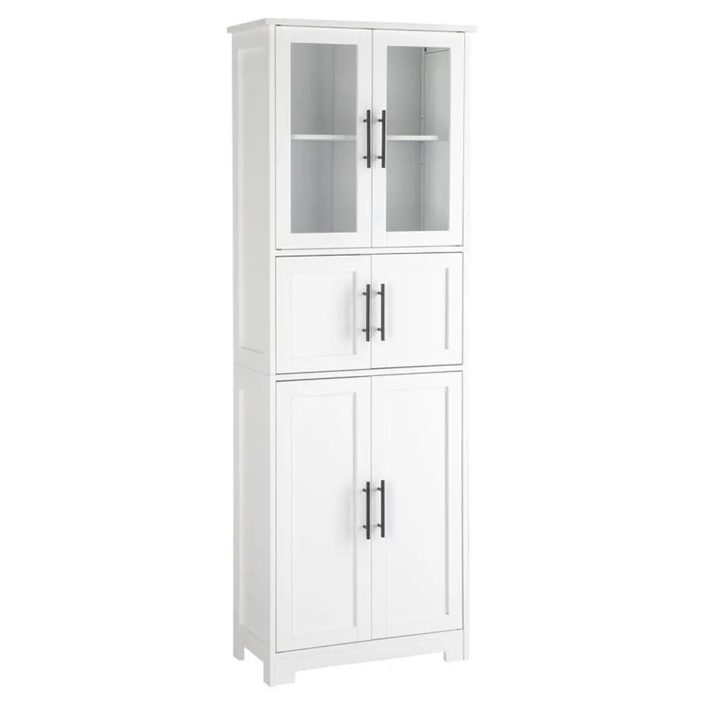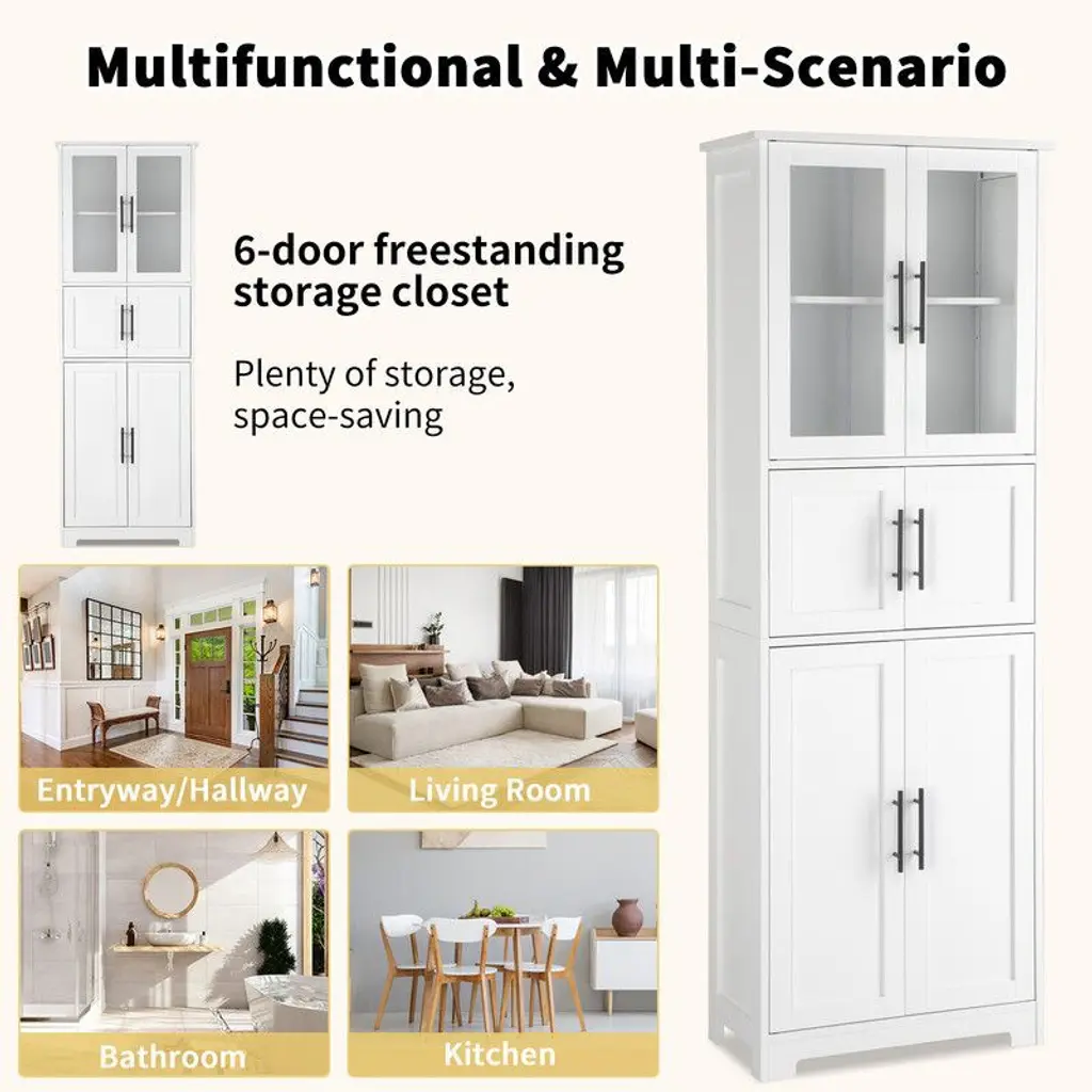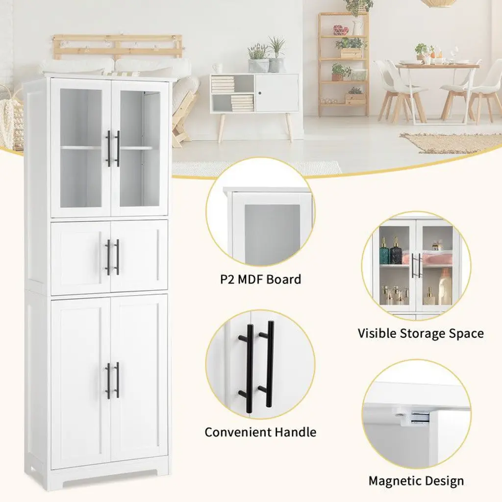 Featuring a pristine white color and simple, sophisticated design, this bathroom cabinet matches perfectly with a variety of interior styles and enhances the elegance of your bathroom, living room, or entryway can meet your various storage needs, providing versatile organization for towels, toiletries, and other essentials.