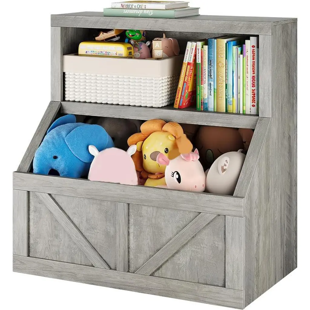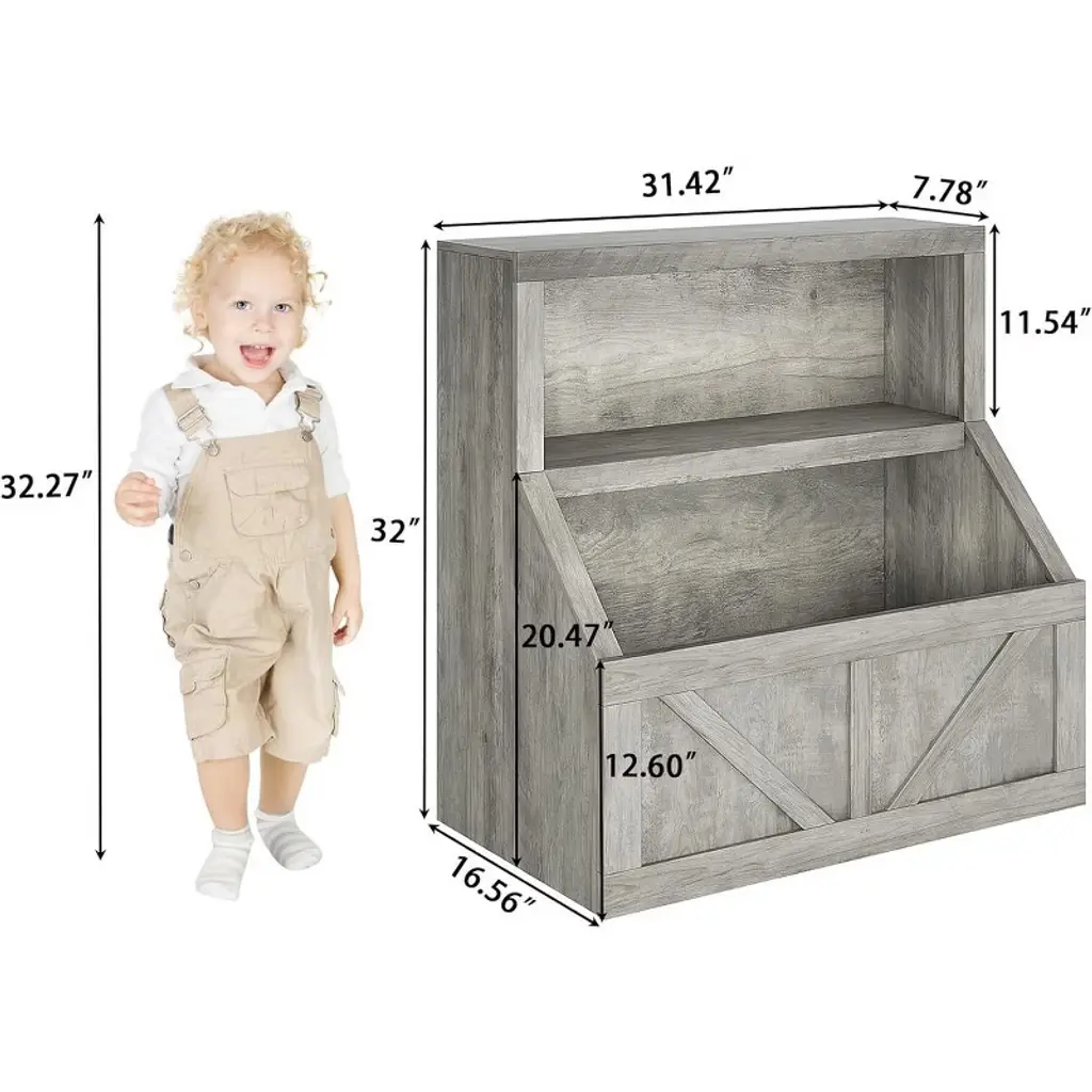 Kids Bookshelf & Toy Organizer With Cubby - Wood Large Cubbies Storage For Playroom,nursery,bedroom,gray