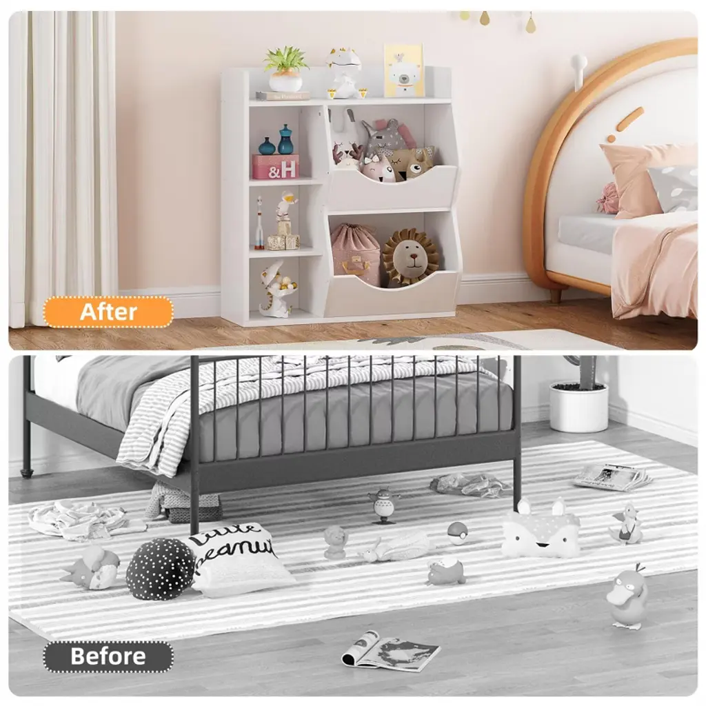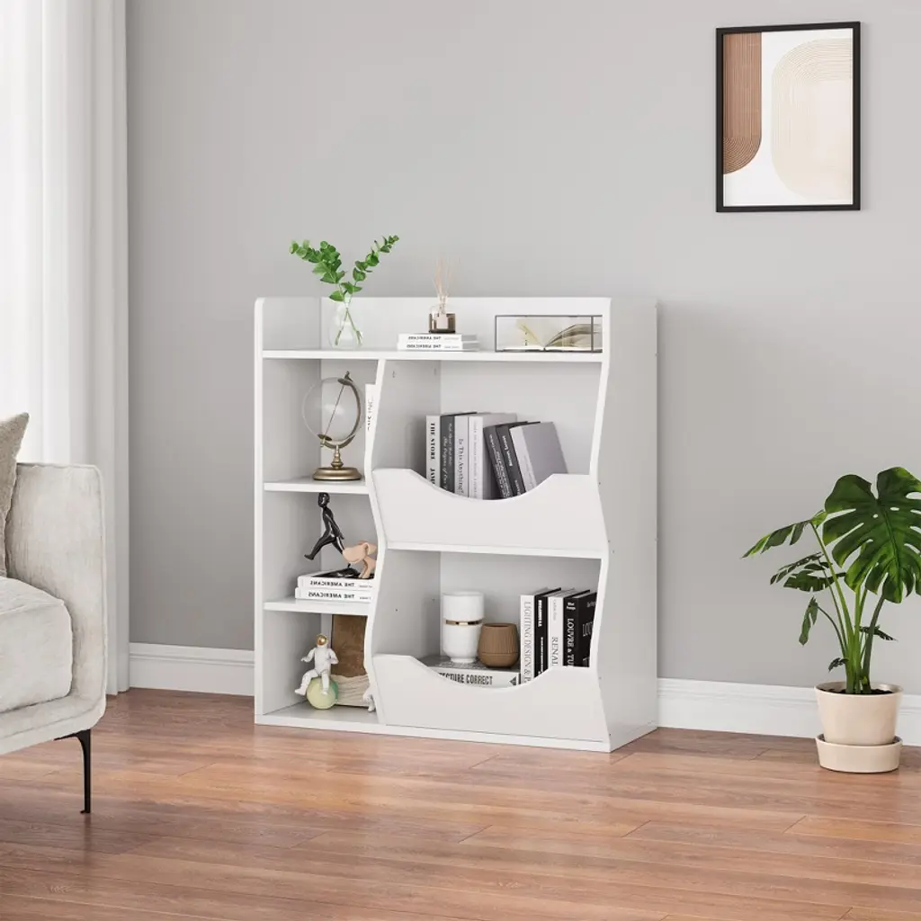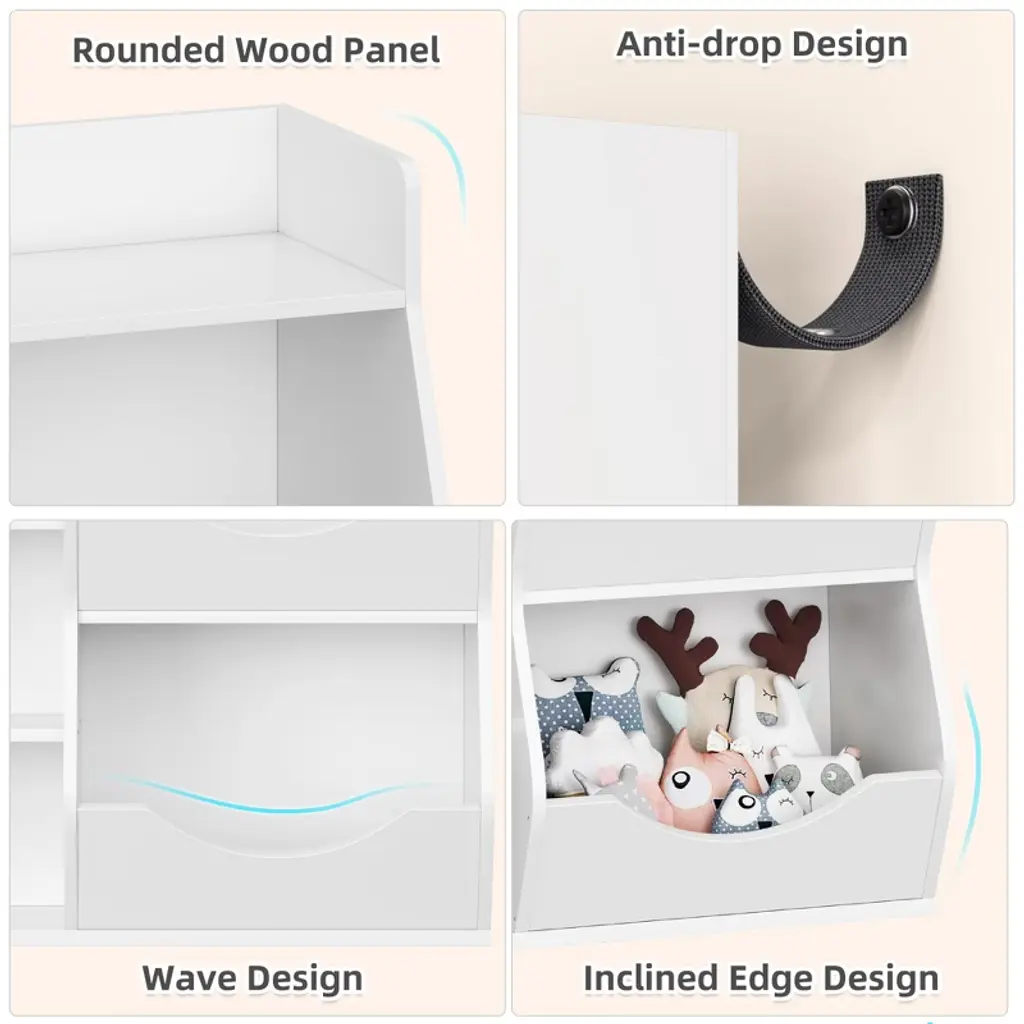 Kids Toy Storage Organizer, 5-cubby Bookshelf, Children's Toy Shelf, Wooden Storage Cabinet