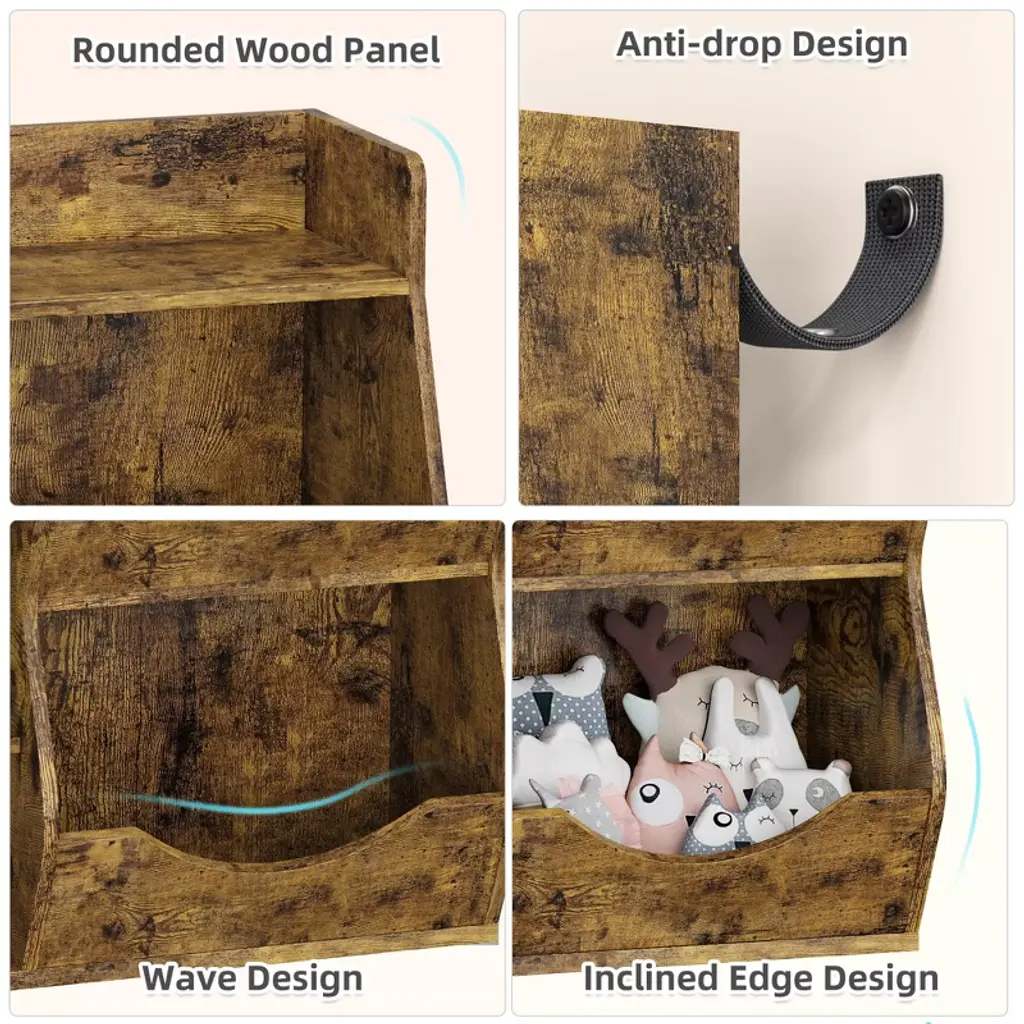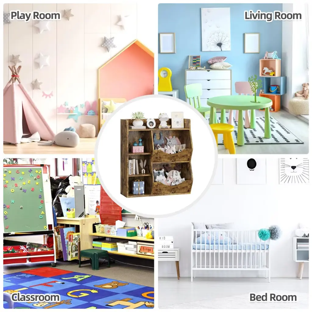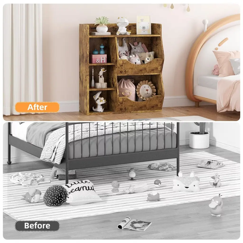 Kids Toy Storage Organizer, 5-cubby Bookshelf, Children's Toy Shelf, Wooden Storage Cabinet