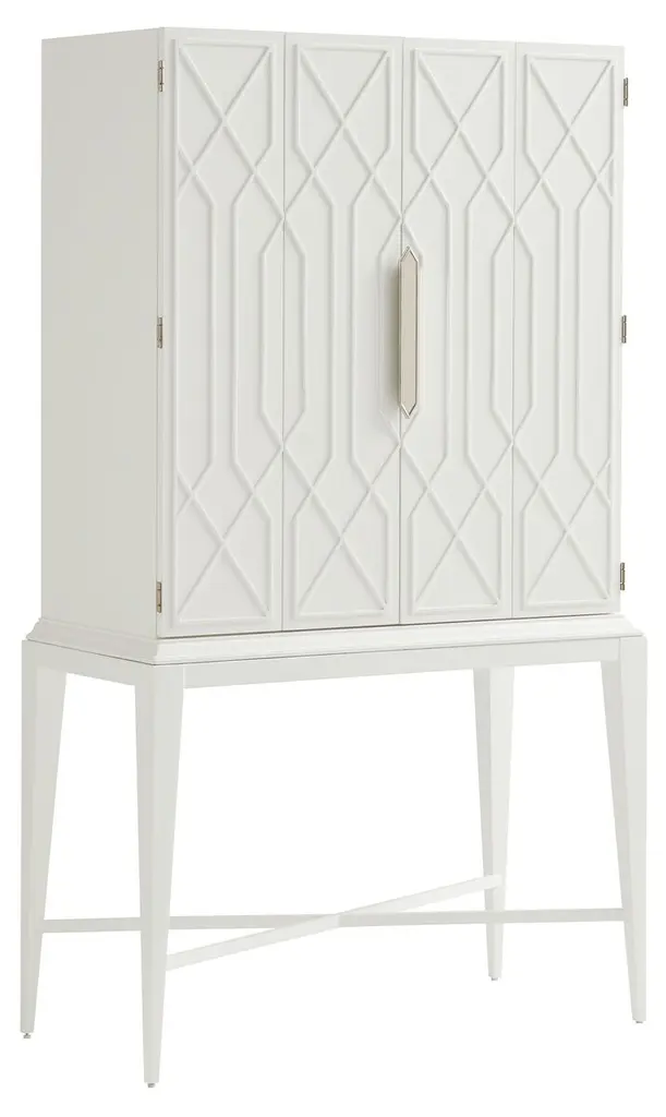 Two distinct elements make up the structure of this elegant cabinet, boasting a modern Silhouette and superb finishes. The base in wood with a natural oak finish boasts bronze-finished brass tips and elegant carvings on each top. The body of this imposing piece is in wood with a black oak finish. The two front doors open into an internal space with two wooden shelved in matte black lacquered finish.