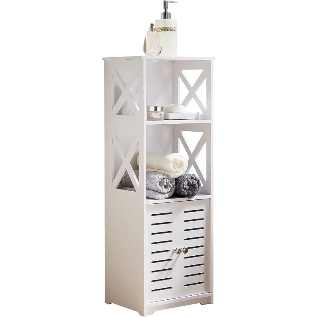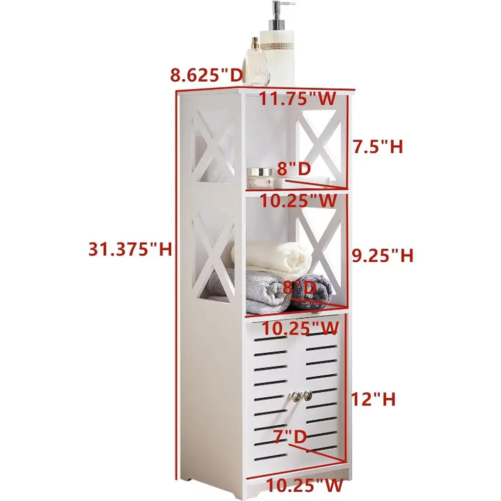 Kings Brand Furniture - Bathroom Floor Storage Cabinet, Side Toilet Cabinet With Door And Shelfs, White