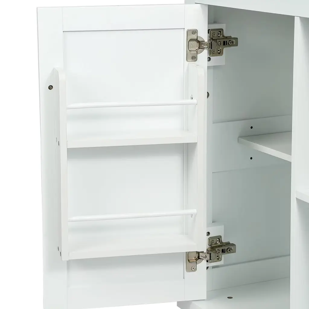 Upgrade your kitchen with this versatile kitchen cart featuring a rubber wood drop-leaf countertop, internal storage racks, and ample storage space. The cart includes a large table top that can be used for meal prep or as a dining table, and a practical drop-leaf design for space-saving. With 5 smooth rolling wheels and two locking brakes, it offers mobility and stability, while the four solid wood cabinet feet provide an option for stationary use. This kitchen island brings a contemporary yet timeless look to your kitchen or dining room.