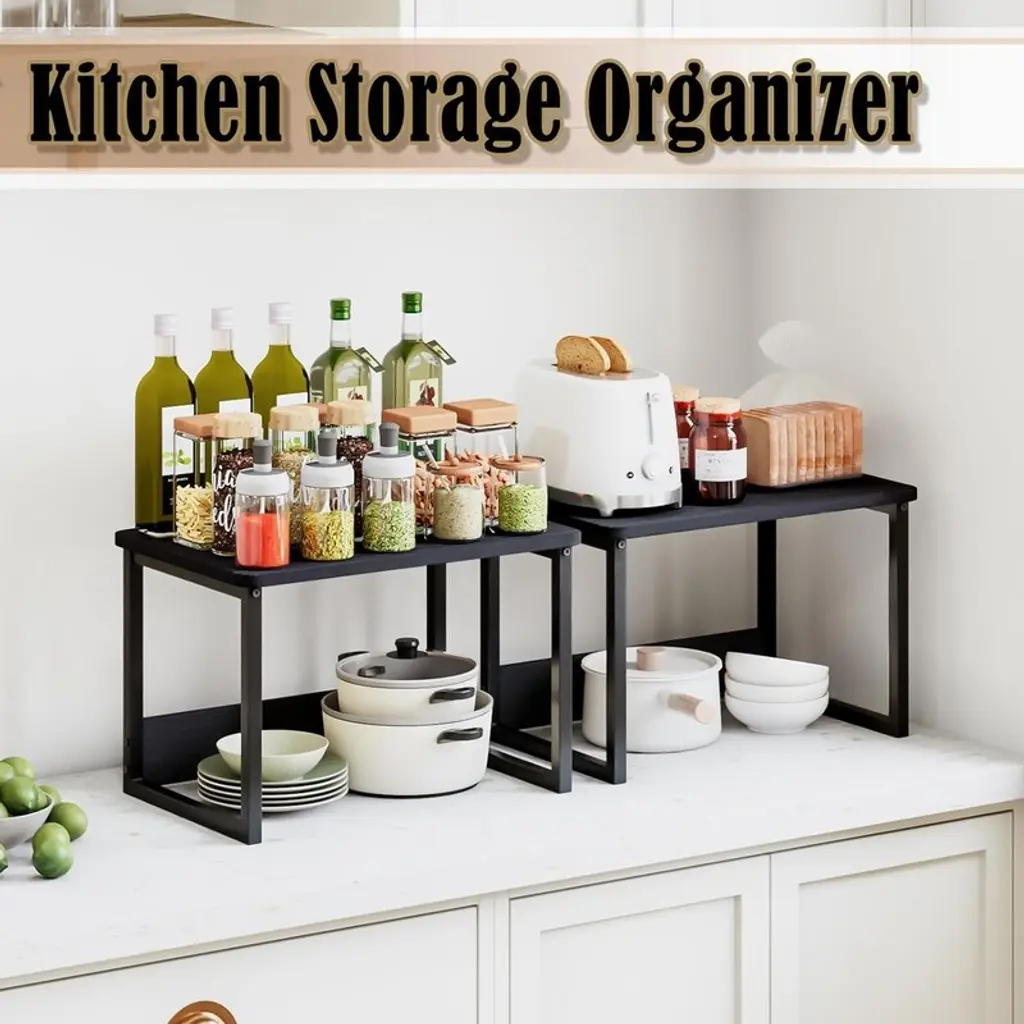 Kitchen Countertop Organizer Cabinet Shelf - 12.4"d X 17"w X 12"h - Black