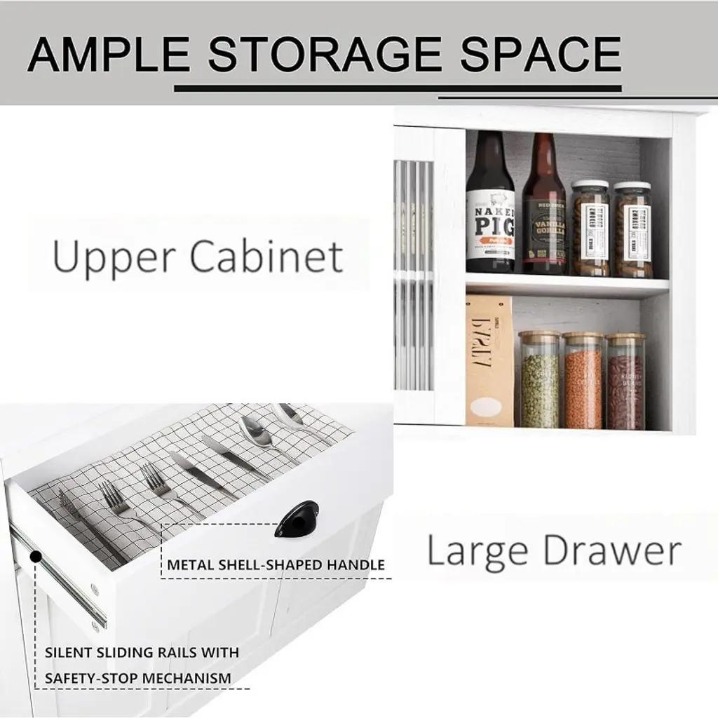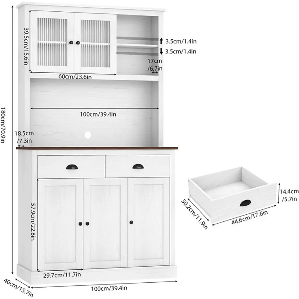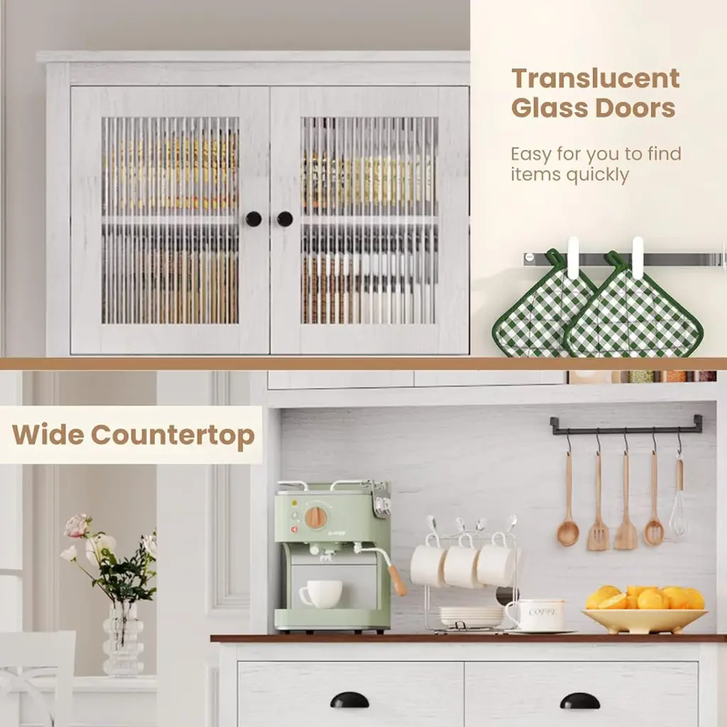 Kitchen Pantry Storage Cabinet, 71" Tall Wood Pantry , Modern Kitchen Hutch Cabinet, Coffee Bar Hutch For Dining Room, Living Room,white