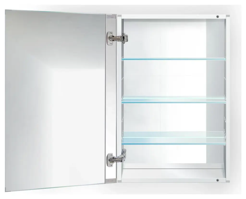 Functional. Sleek. Timeless. The Kruggs Reflections medicine cabinet offers the perfect blend of elegance and functionality for any bathroom environment. The cabinet features a modern, mirrored exterior to optimize the size of your bathroom. A mirrored interior on the front inside door and back panel of the cabinet ensures continuous reflection access. The interior also includes three clear, adjustable glass shelves to discreetly store your bath items. For flexible installation, the cabinet can be recessed or surface mounted, making the decor ideal for both large and small bathrooms. Soft-close, Austrian Blum hinges ensure a quiet bathroom atmosphere - premium touches without the extravagant price tag. An expression of style and practicality, this high-end medicine cabinet is a beautiful statement piece for your bathroom.