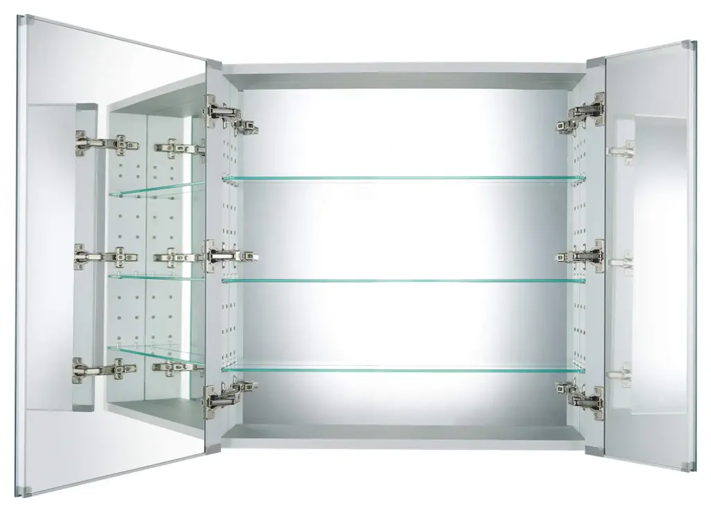 Functional. Sleek. Timeless. The Kruggs Reflections medicine cabinet offers the perfect blend of elegance and functionality for any bathroom environment. The cabinet features a modern, mirrored exterior to optimize the size of your bathroom. A mirrored interior on the front inside door and back panel of the cabinet ensures continuous reflection access. The interior also includes three clear, adjustable glass shelves to discreetly store your bath items. For flexible installation, the cabinet can be recessed or surface mounted, making the decor ideal for both large and small bathrooms. Soft-close, Austrian Blum hinges ensure a quiet bathroom atmosphere - premium touches without the extravagant price tag. An expression of style and practicality, this high-end medicine cabinet is a beautiful statement piece for your bathroom.