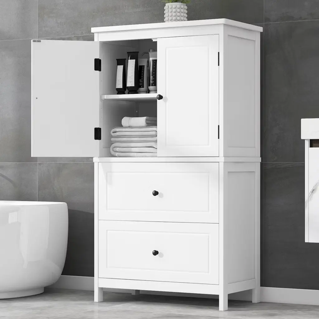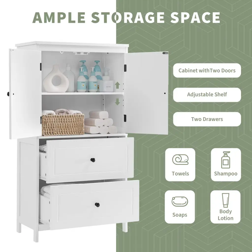 Ktmbdw Bathroom Floor Cabinet, Free Standing Cabinet With Double Door And 2 Drawers, Side Tall Storage Organizer For Living Room/kitchen, White