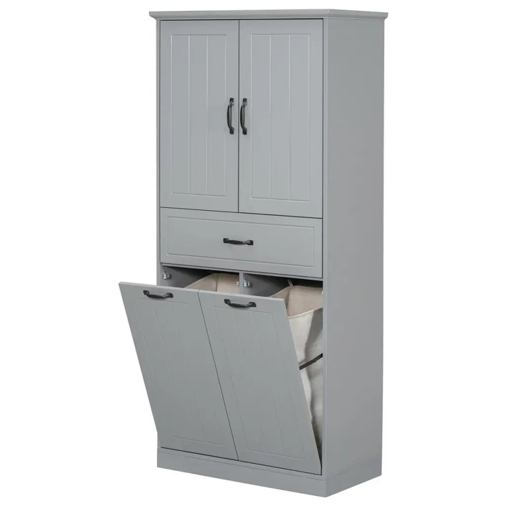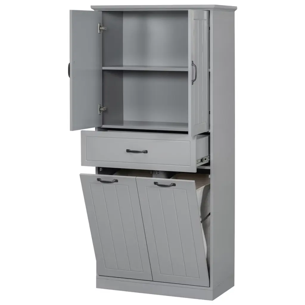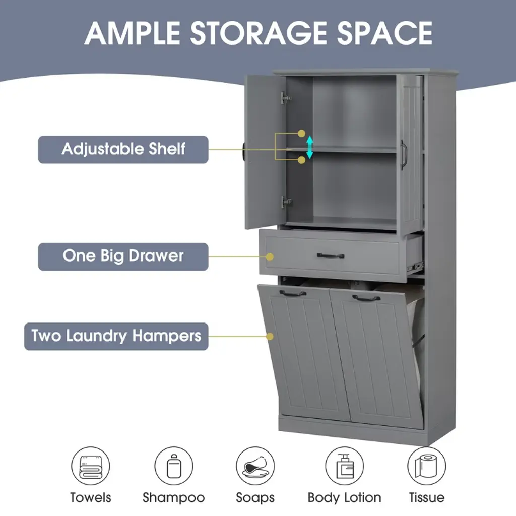 Kwpzqeb 65.8" Bathroom Storage Cabinet With 2 Tilt Out Laundry Hamper, Wood Bathroom Laundry Cabinet With Door And Drawer For Bathroom, Balcony, Gray