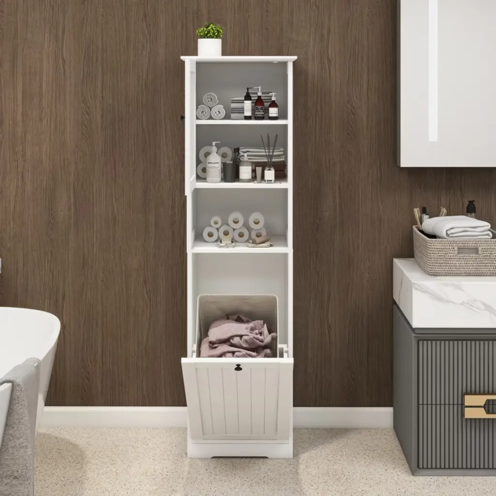 Kwpzqeb Tilt-out Laundry Sorter Cabinet, Standing Laundry Sorter Cabinet With Barn Door & Storage Shelf, Bathroom Cabinet For Bathroom, Laundry Room