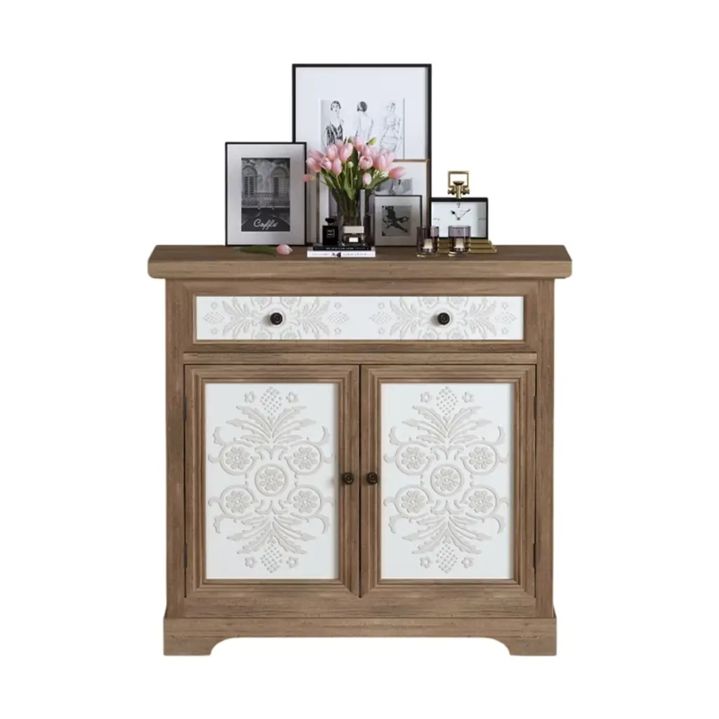 Kwpzqeb Vintage Accent Cabinet With Carved Floral Panels, Double Barn Door Accent Cabinet With Drawer, Farmhouse Cabinet For Living Room, Entryway