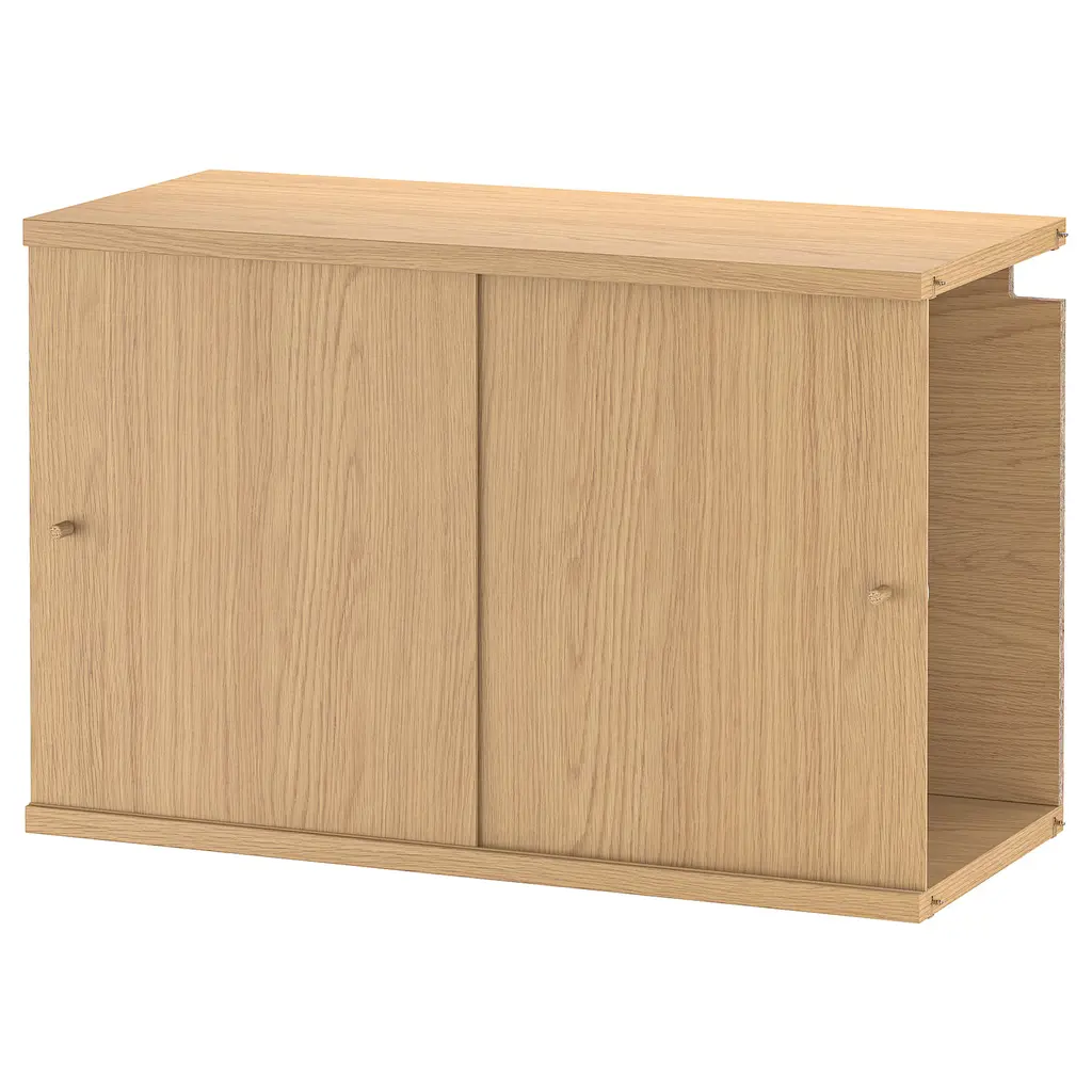 LÅDMAKARE Cabinet with sliding doors - oak effect. Add this cabinet with doors to LÅDMAKARE storage system for items you want to keep easily accessible yet out of sight. The sliding doors allow more room for furniture since they don’t open out over any floor space.