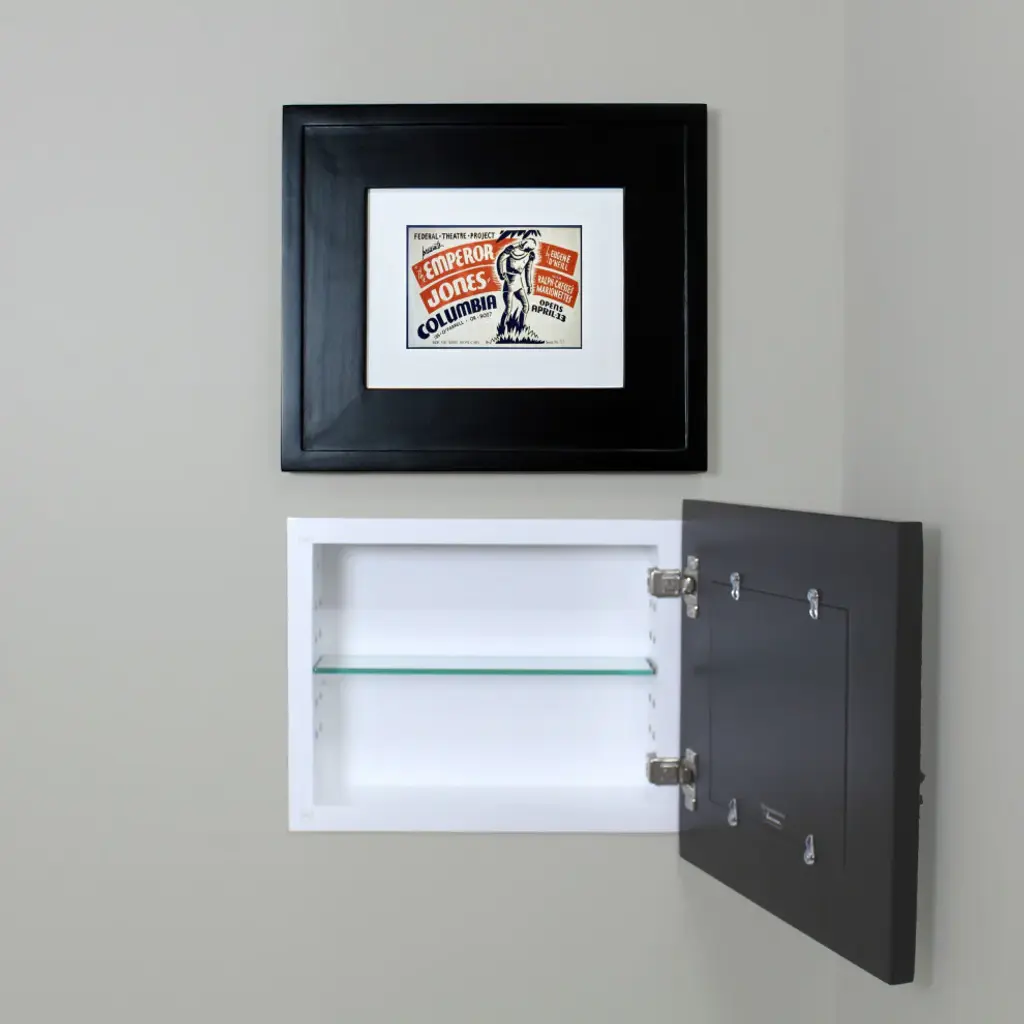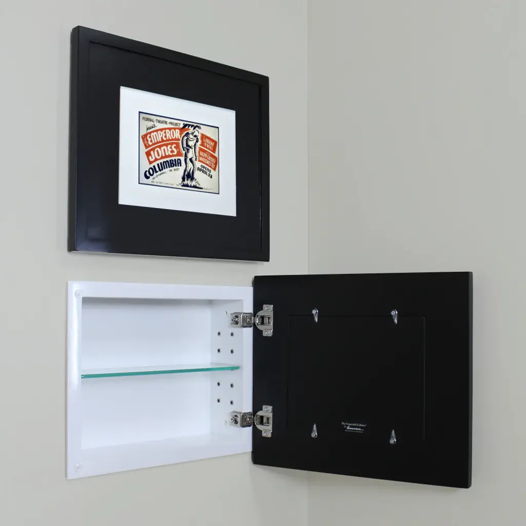 Landscape Recessed Concealed Medicine Cabinet, 14"x11", Black