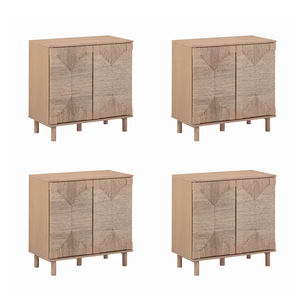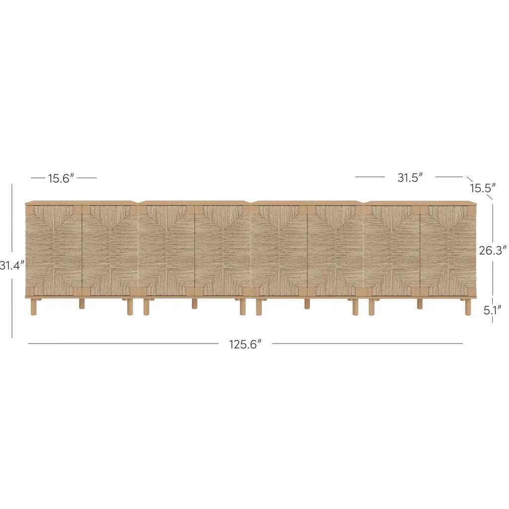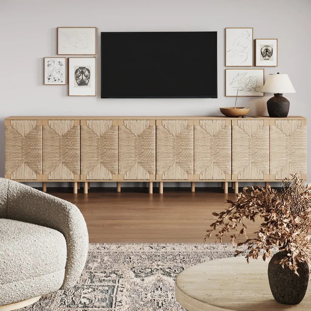 Large Seagrass Tv Console Credenza Raw Oak (Set Of 4)