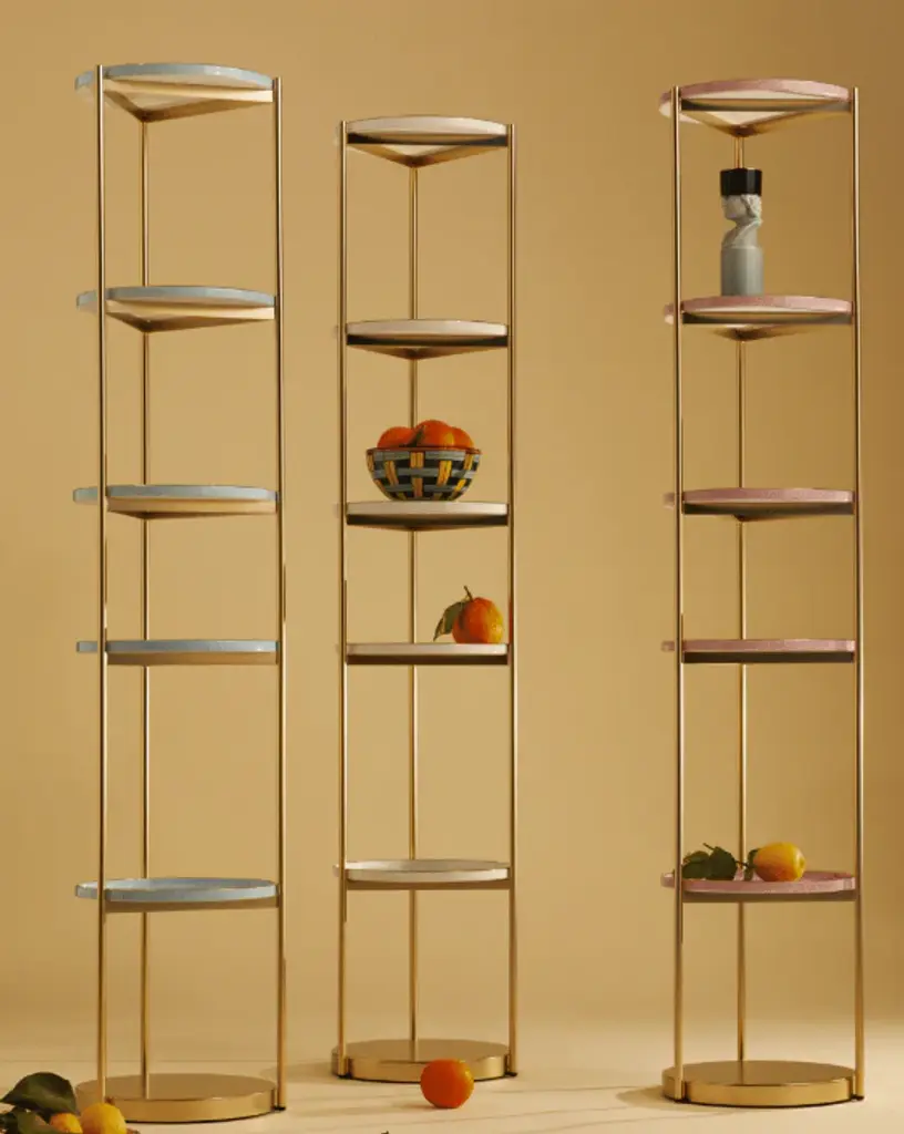 Experience the elegance of contemporary Italian furniture with the LaTour Cabinet from Ginori 1735. This self-standing shelving unit utilizes the "canello" technique, boasting skilled welds adorned with a semi-matte gold plating exclusive to Ginori 1735. Each shelf of the LaTour Cabinet is a masterpiece, crafted from hand-decorated porcelain featuring delicate gold thread accents. Detachable and versatile, these shelves can also serve as decorative trays, adding both functionality and sophistication to any space. Available in three stunning color options – white, pink, and light blue – the porcelain shelves define the LaTour's distinct aesthetic, blending seamlessly with any interior style. Exclusively offered at abc carpet & home, the Domus Collection by Ginori 1735 represents a fusion of creativity and innovation, celebrating the essence of Italian artisanal culture. With meticulous attention to detail and a commitment to excellence, each piece embodies the beauty and craftsmanship synonymous with the Ginori 1735 legacy. Standing at 13 inches in diameter and 68.5 inches in height, the LaTour Cabinet makes a bold statement in any room, luxuriously offering space for your storage needs. Crafted from premium porcelain and steel, it exudes durability and elegance, reflecting the dedicated quality of Italian craftsmanship. Experience the act of creation and artistic sensitivity of Italian artisanal culture with the LaTour Cabinet from Ginori 1735. The unique allure of this piece from the Domus collection will breathe new life into your home and transform every moment of the day into a ritual of our time.