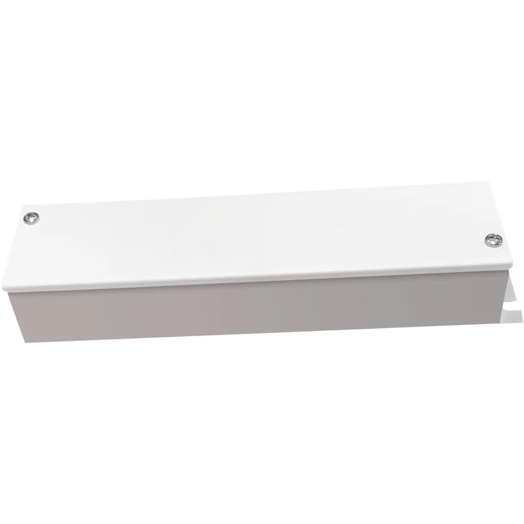 Hardwire box with male/female Molex connections, end power connection ports, (6) 3/8” knockouts, and On/Off rocker switch, white finish