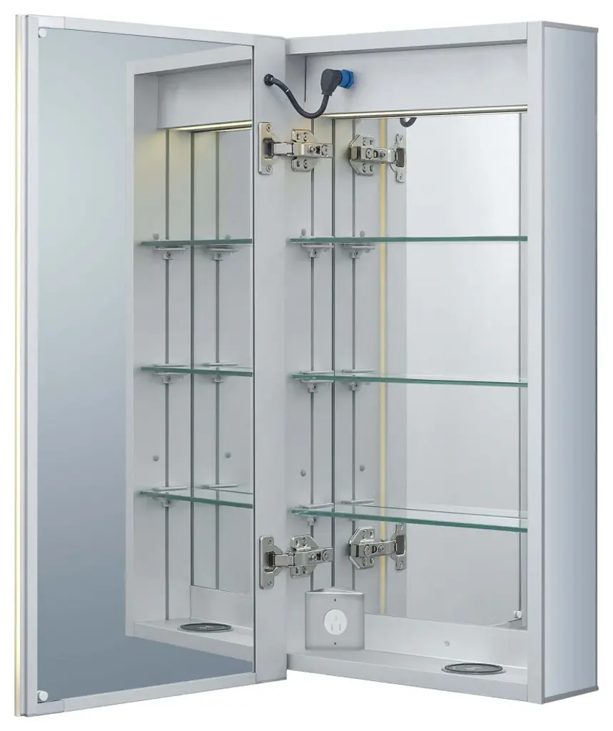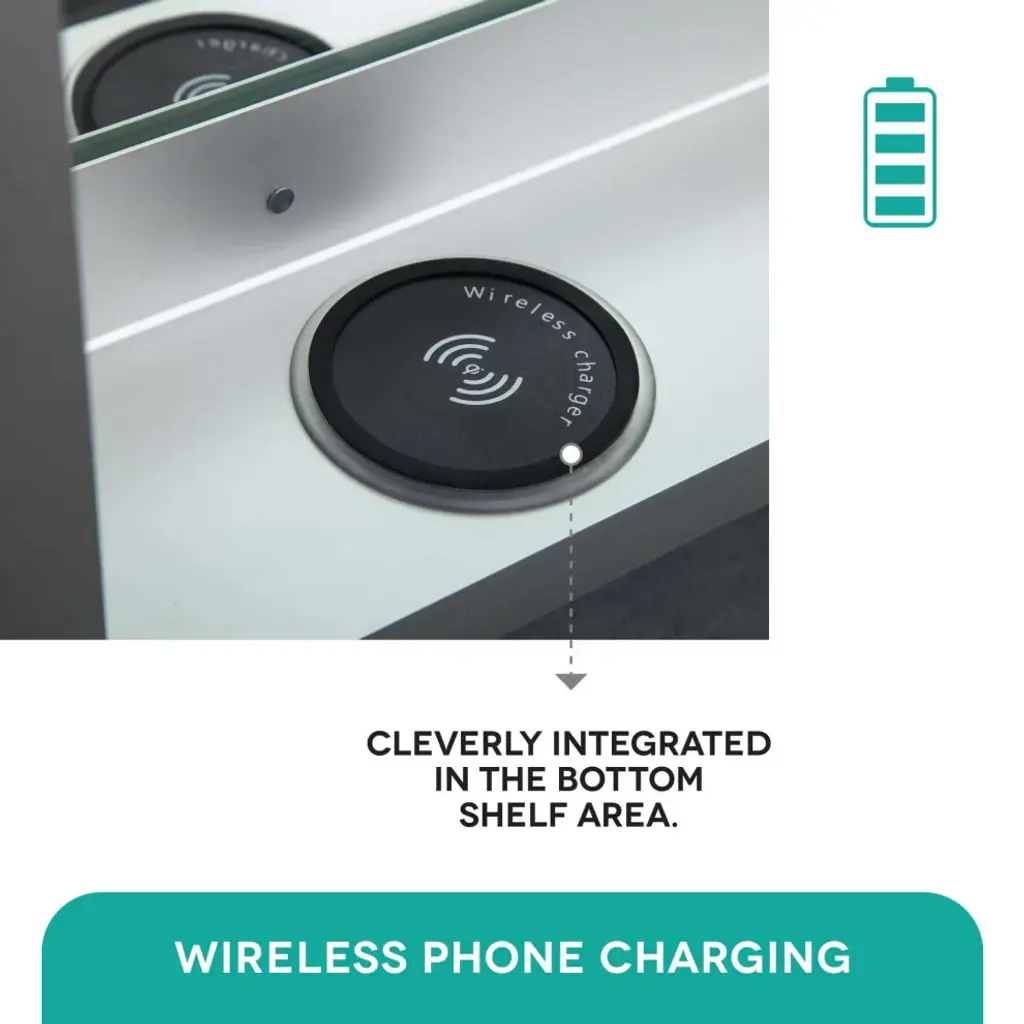 When it comes to quality and durability, Fine Fixtures is the way to go. As with everything else we make, our stainless steel and aluminum medicine cabinets will bring your bathroom designs to life. These standalone cabinets feature sleek designs that open up the space and catch the light, creating the illusion of roominess while providing added storage space. Their re ned designs are easy ways to upgrade your bathroom space. Choose from a number of styles and sizes, each with its own unique touch to suit your individual taste and decor. The various cabinets all come with adjustable shelves, allowing you to tailor your cabinet to your specific needs. When you pick your cabinet, whether it includes LED lighting strips or features a seamless mirrored surface, our timeless styles ensure that you will love your medicine cabinet for the duration of its long life. HEAVY DUTY CONSTRUCTION- Constructed from high quality anodized aluminum with a durable nonrusting and chip free finish. Adjustable tempered glass shelves offer additional bathroom storage. They will easily accommodate your essential toiletries and bath items such as soaps, shampoos, toothpaste, in addition to your makeup. MIRROR MIRROR ON THE WALL- Mirrored front door, back door, and mirrored rare wall will add beauty and elegance to any bathroom or vanity decor. Mirrored sides provide superior visibility. Frameless pencil edge. Grooved all around for clean and easy access. Soft closing hinges at 180 degrees opening angle. LED- LED task lighting integrated to the front as well as inside top of the cabinet. Brightens at 22 Lumens in Warm White color at 3500k (14.4W/M). Our brilliant lights have an estimated life expectancy of 36,000 hours. Features a blue lighted touch on/off button. Mirror must be hardwired, wiring comes out from the top right of cabinet. (Light is not strong enough to be the source of light for your vanity/washroom, additional lighting will be needed.) RECESSED OR WALL MOUNT INSTALLATION OPTION- No assembly required. All mounting hardware included. Easy installation, step by step easy to follow clear instruction guide included. Exclusive feature - Wireless cell phone charger on bottom shelf - Works for ''Apple'' or ''Android'' Touch sensor switch for Anti-fog technologyFinish - Stainless Steel Number Of Doors - 1 Shape - Rectangle Material - Stainless Steel Concealed Hinges Adjustable Shelves Interior Mirror Adjustable Hinges Number of shelves - 6
