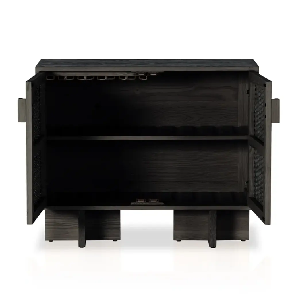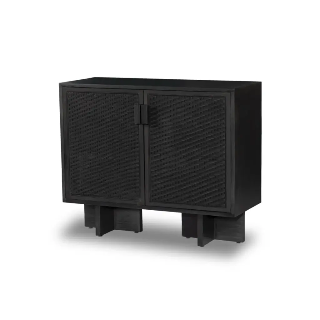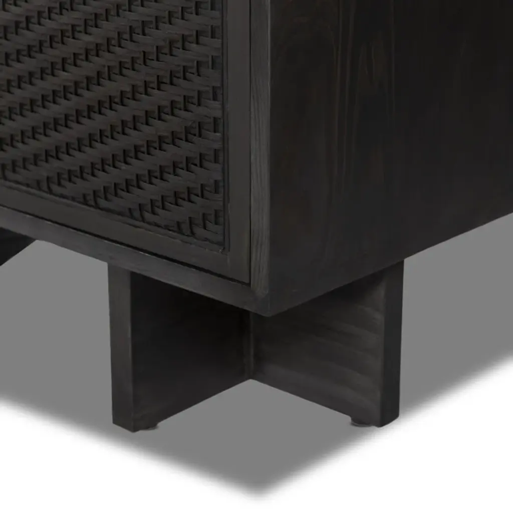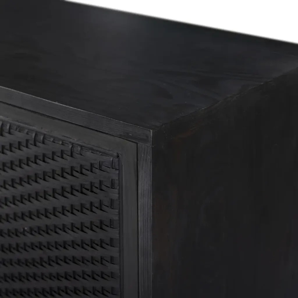 Experience cane on a whole new level. Woven rod cane paneling brings a novel high-texture look to solid pine, which has been bleached for a light, earthy look.