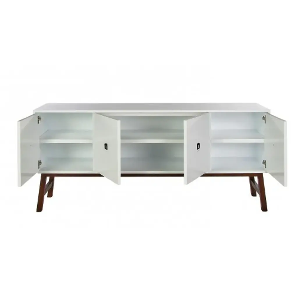 Create more space and extra style with this four door cabinet supported by beautiful angled legs.