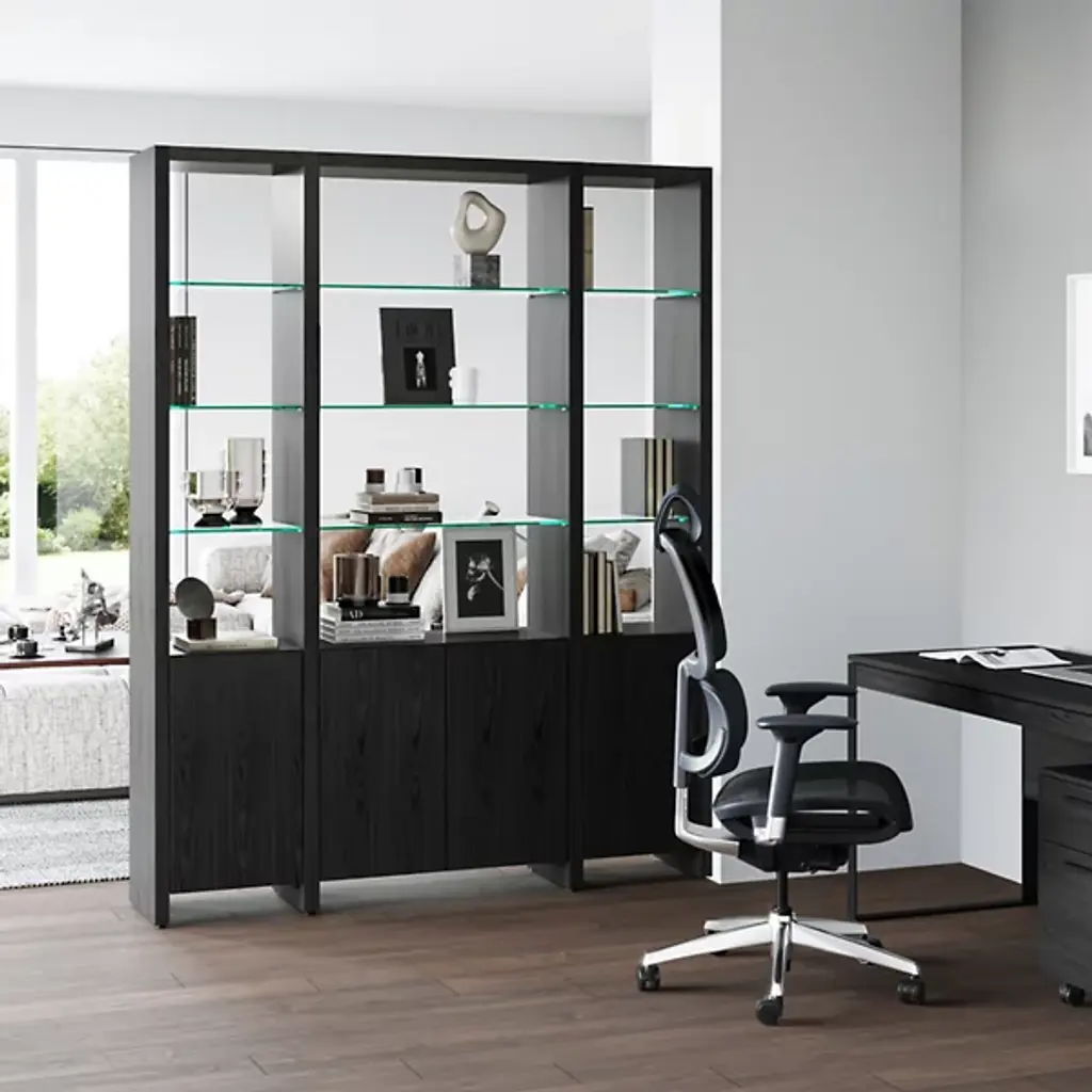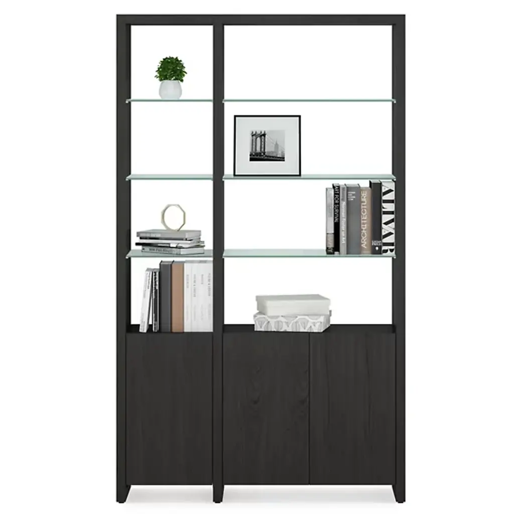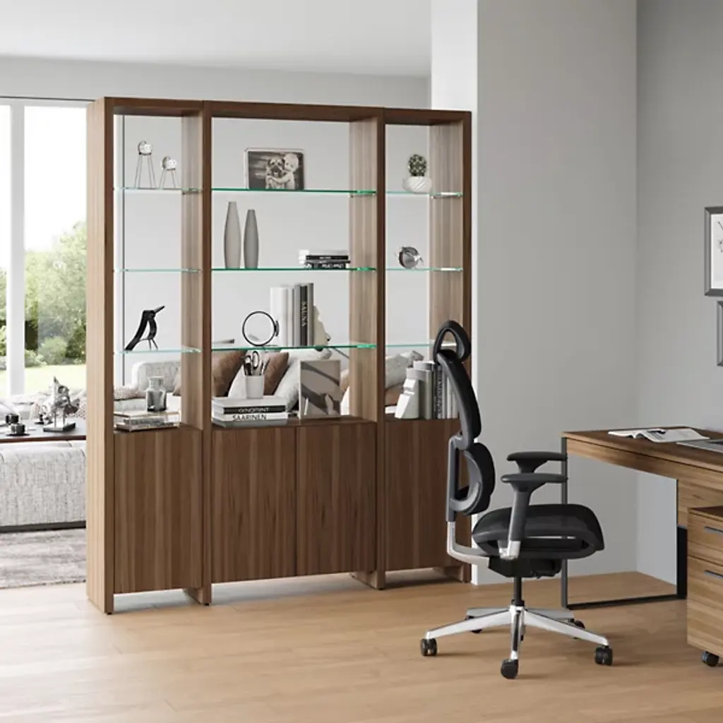 Keep your home and office neat and tidy with the BDI Linea 5801 Shelf. This innovative, wooden storage system blends the capabilities of a traditional bookcase with a home office file cabinet. The polished, tempered clear glass shelves provide a clean and modern look, while the lower shelf allows for organization and cord management. From the beautiful exterior look to the versatility, this shelving unit will quickly become a mainstay in your living room, study or home office space