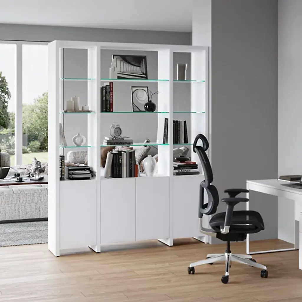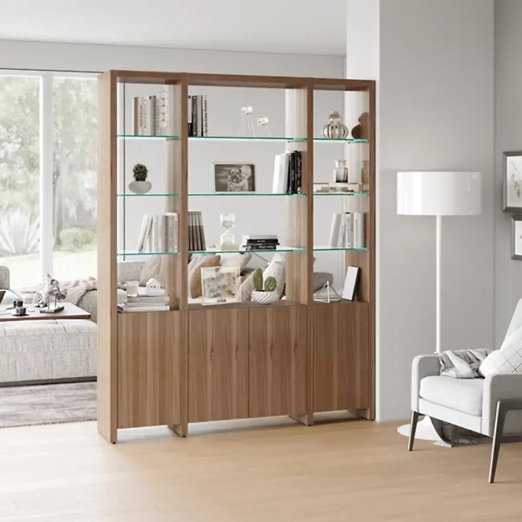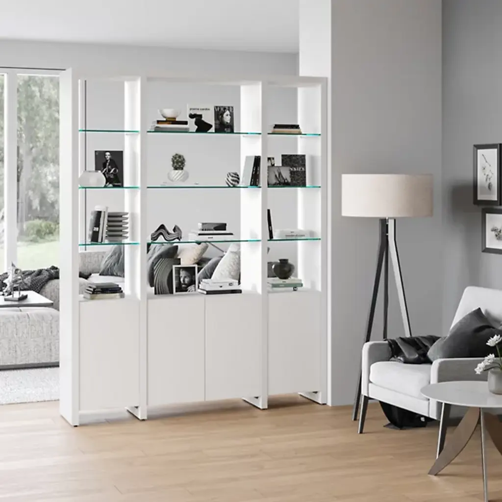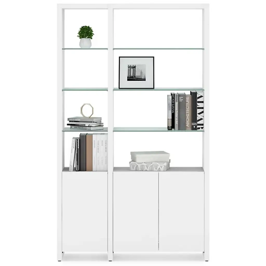 Keep your home and office neat and tidy with the BDI Linea 5801 Shelf. This innovative, wooden storage system blends the capabilities of a traditional bookcase with a home office file cabinet. The polished, tempered clear glass shelves provide a clean and modern look, while the lower shelf allows for organization and cord management. From the beautiful exterior look to the versatility, this shelving unit will quickly become a mainstay in your living room, study or home office space