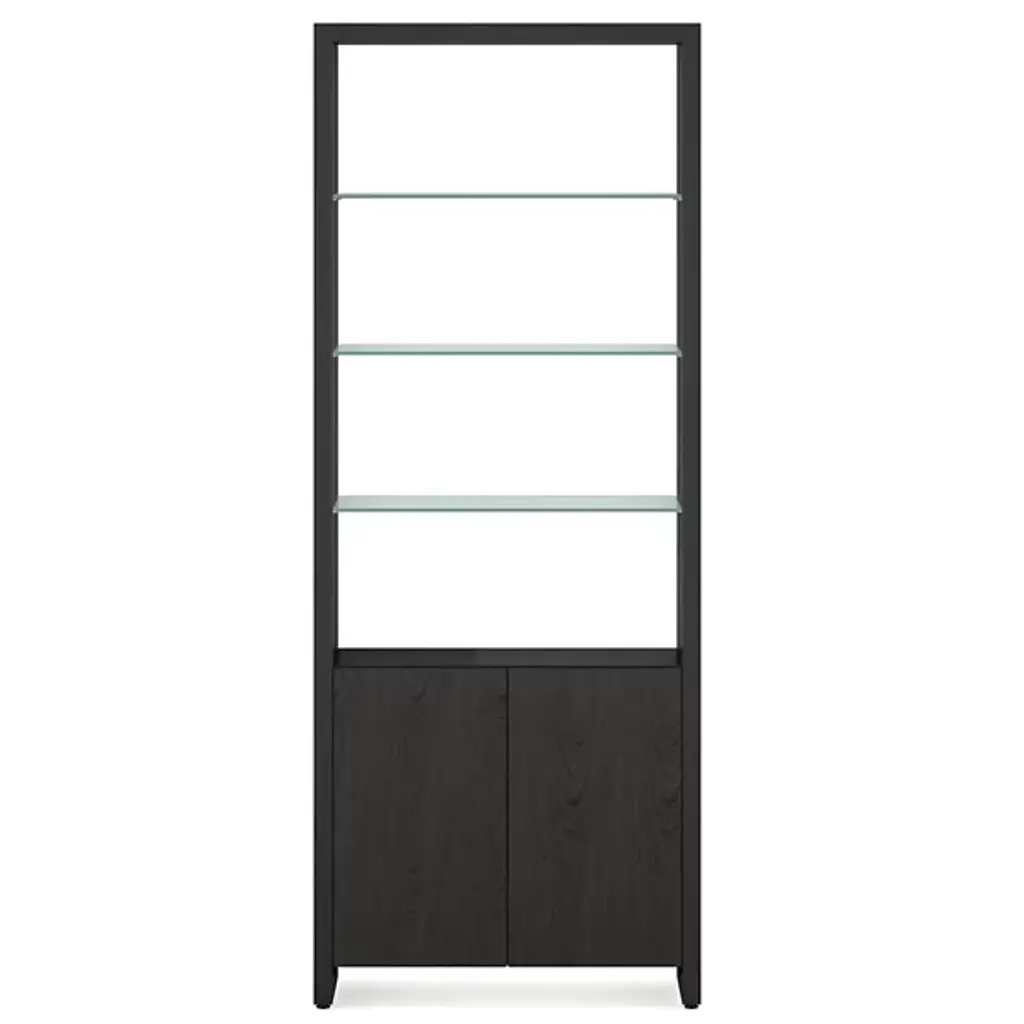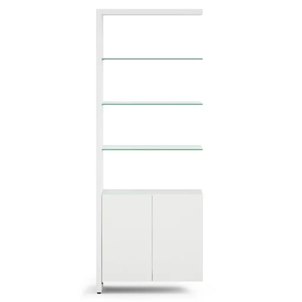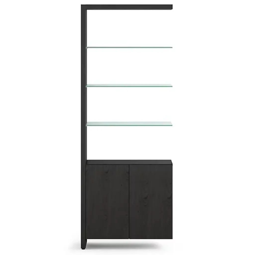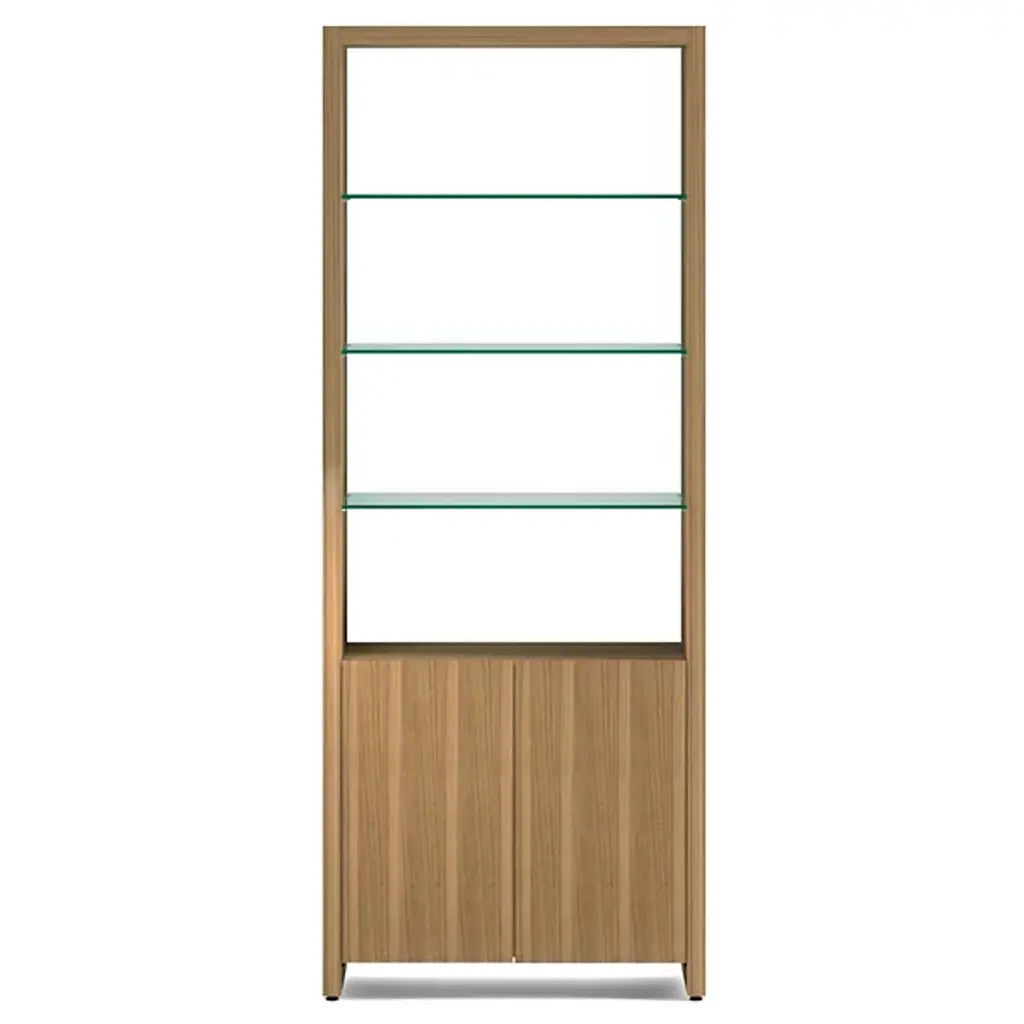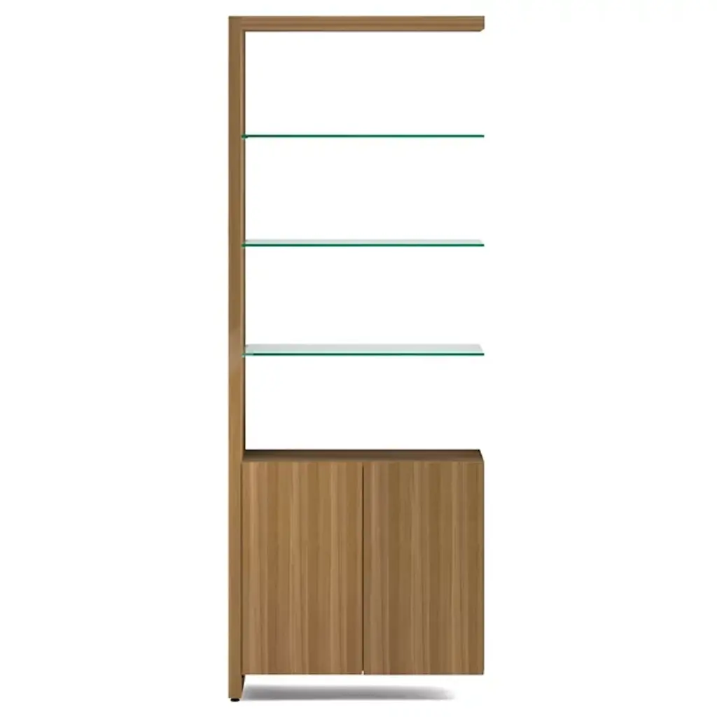 Keep your home and office neat and tidy with the BDI Linea Shelf 5802 + 5802A + 5802A Shelving System. This innovative, wooden storage system blends the capabilities of a traditional bookcase with a home office file cabinet. The polished, tempered clear glass shelves provide a clean and modern look, while the lower shelf allows for organization and cord management. From the beautiful exterior look to the versatility, this shelving unit will quickly become a mainstay in your living room, study or home office space.