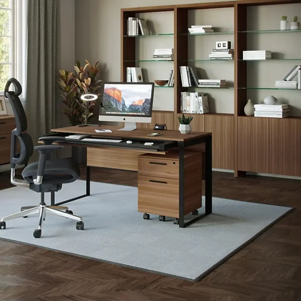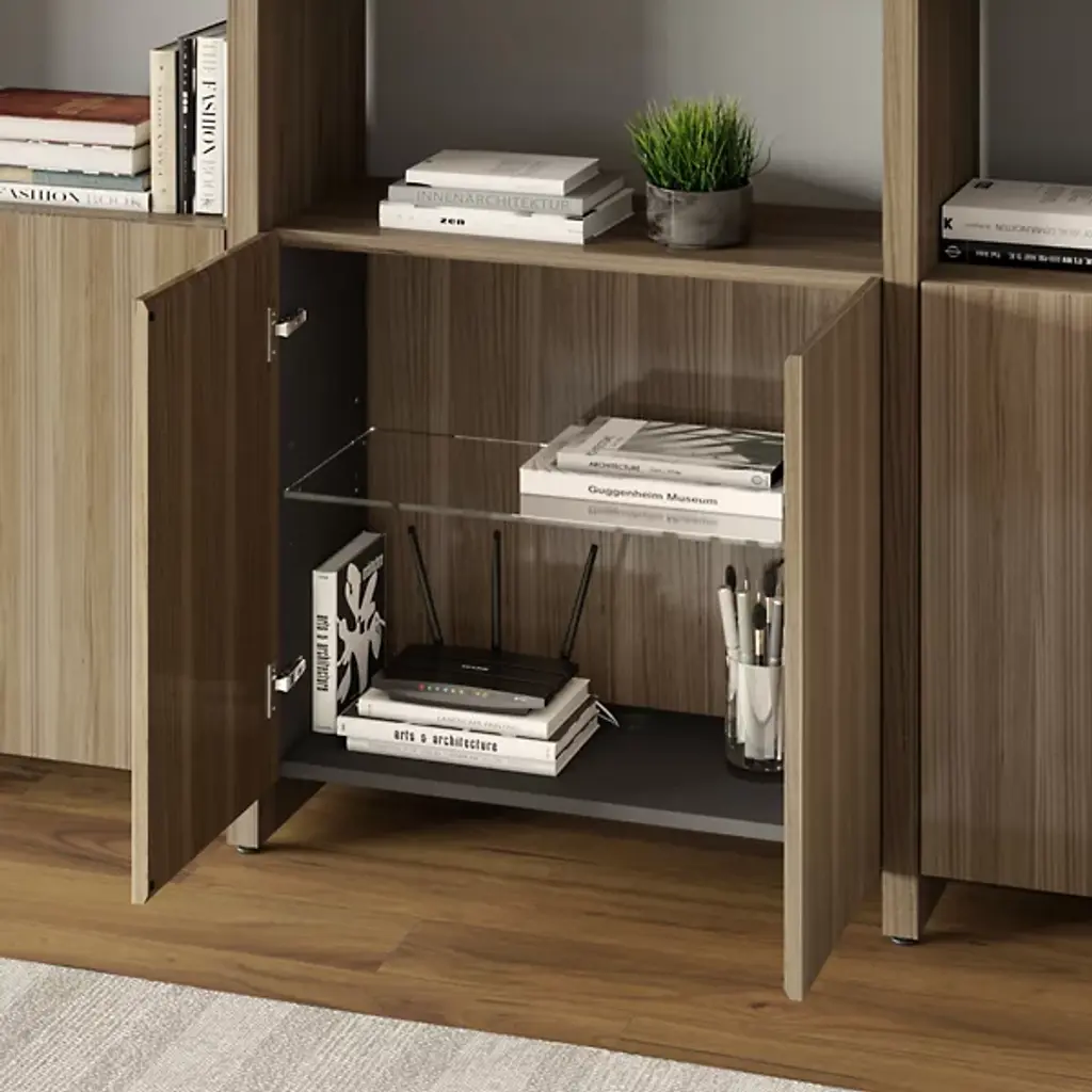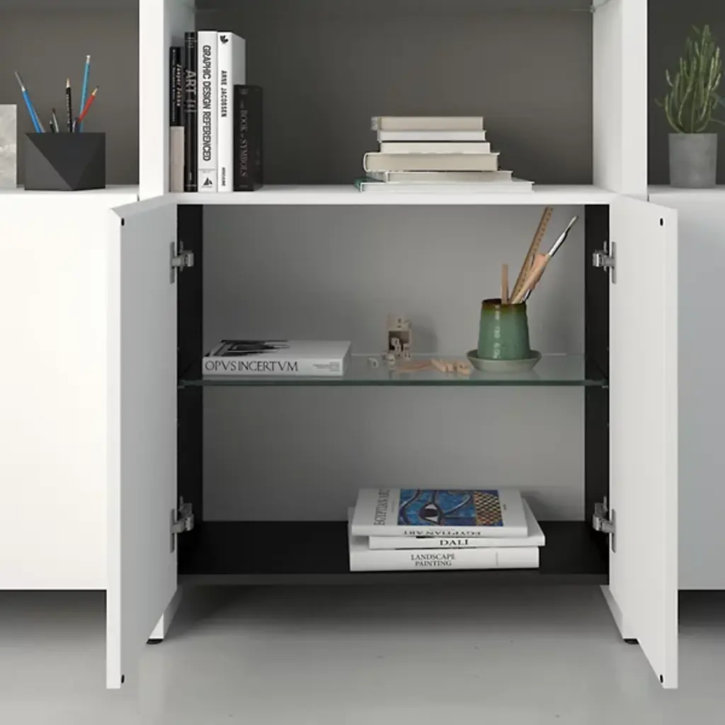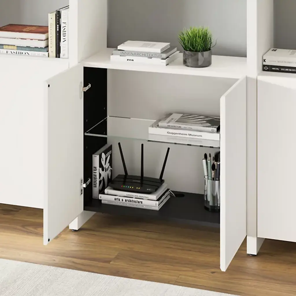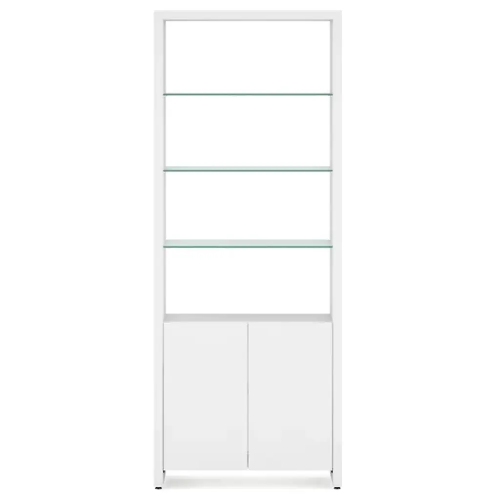 Keep your home and office neat and tidy with the BDI Linea Shelf 5802 + 5802A + 5802A Shelving System. This innovative, wooden storage system blends the capabilities of a traditional bookcase with a home office file cabinet. The polished, tempered clear glass shelves provide a clean and modern look, while the lower shelf allows for organization and cord management. From the beautiful exterior look to the versatility, this shelving unit will quickly become a mainstay in your living room, study or home office space.