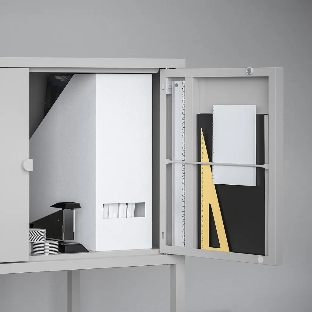 LIXHULT Cabinet - metal/gray 23 5/8x13 3/4 ". Create an asymmetric or unexpected storage solution and fill it with your things. Stack and combine as you please. Keep track of important papers, letters and newspapers by sorting them on the inside of the cabinet door.