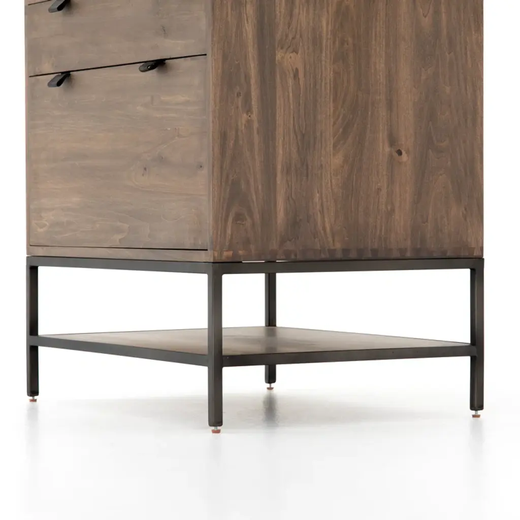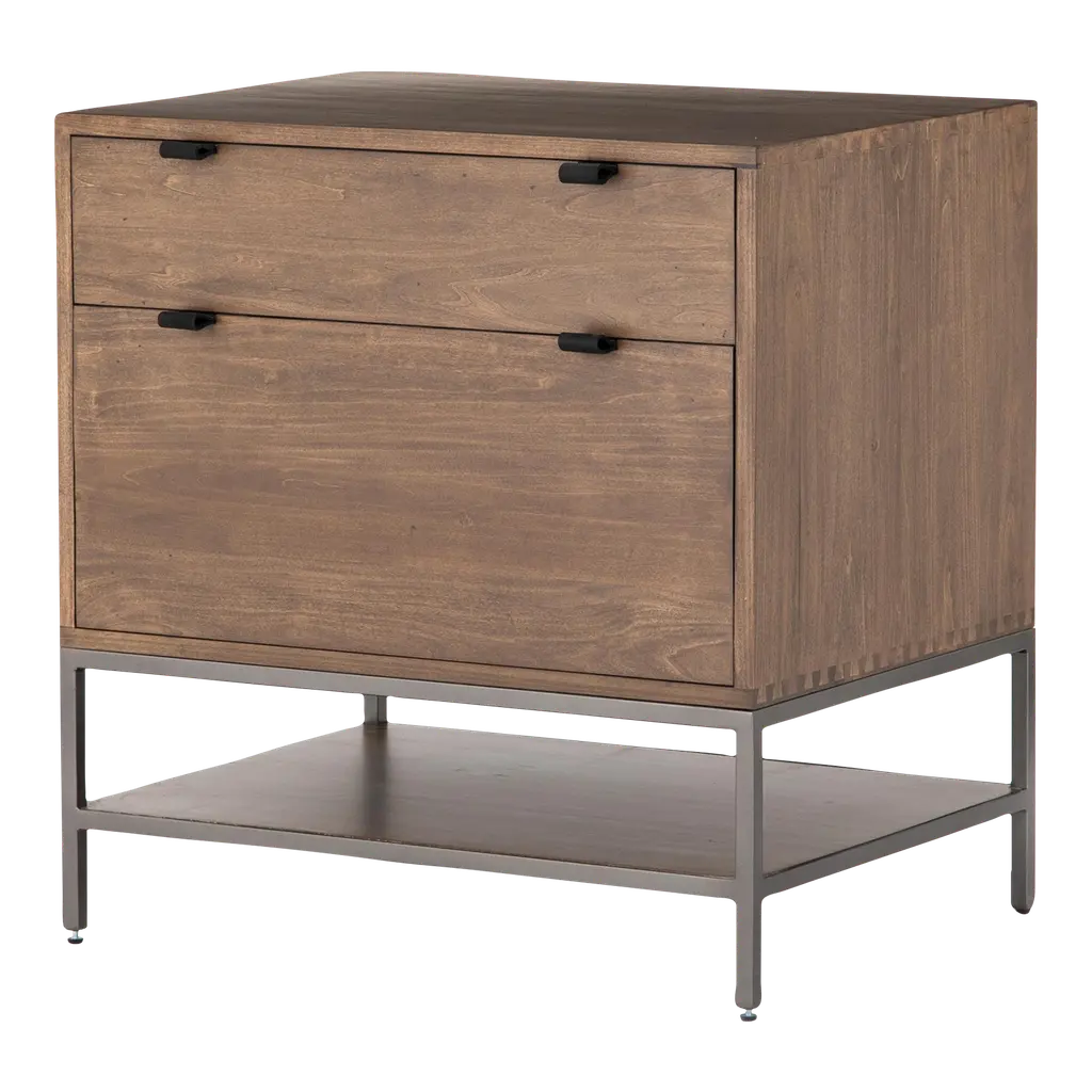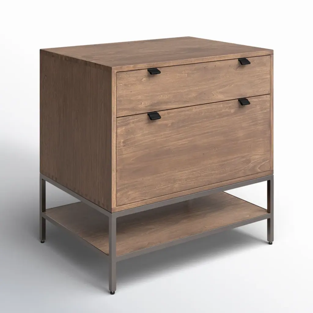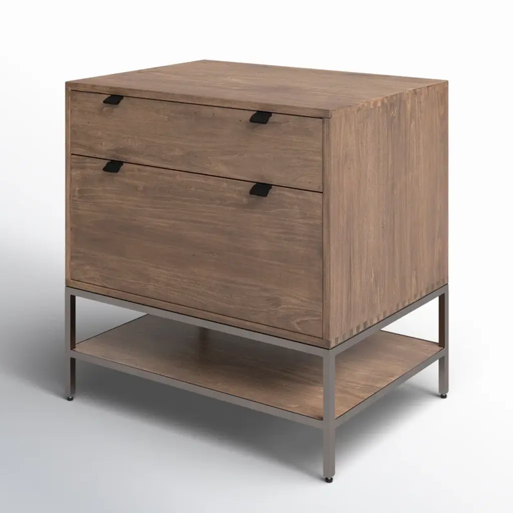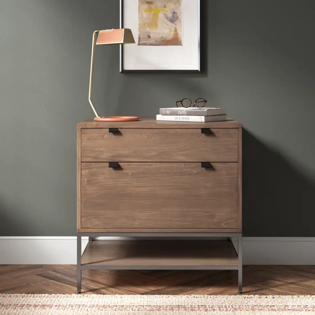 Streamlined and stylish. Light-finished oak and contrasting resin form a clean-lined filing cabinet with dual drawers and gunmetal-finished hardware, bringing file storage space to the modern office. Streamlined and stylish. Oak and contrasting resin form a clean-lined filing cabinet with dual drawers and gunmetal-finished hardware, bringing file storage space to the modern office.