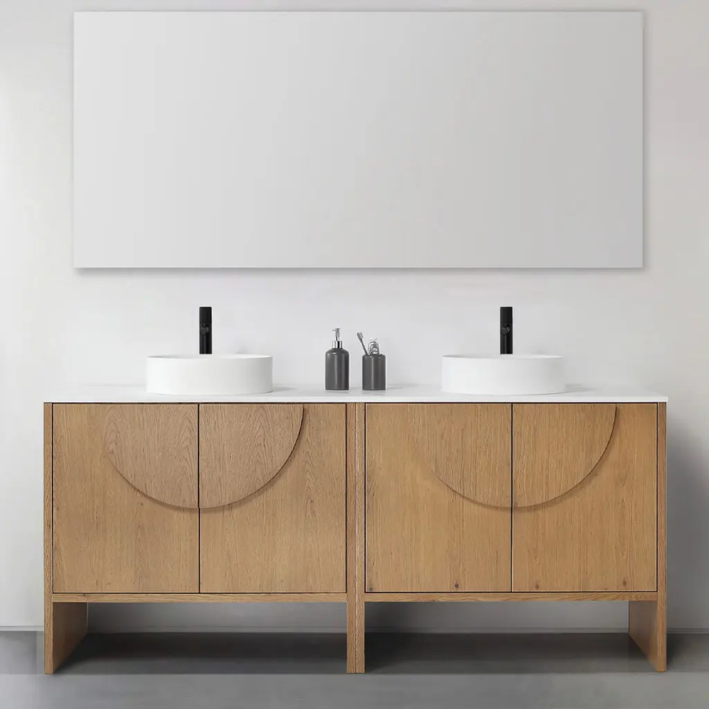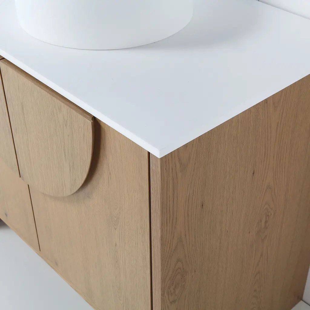Contemporary style meets classic appeal. Plenty of storage space hidden behind cabinet doors. The simple beauty of its sleek countertop.