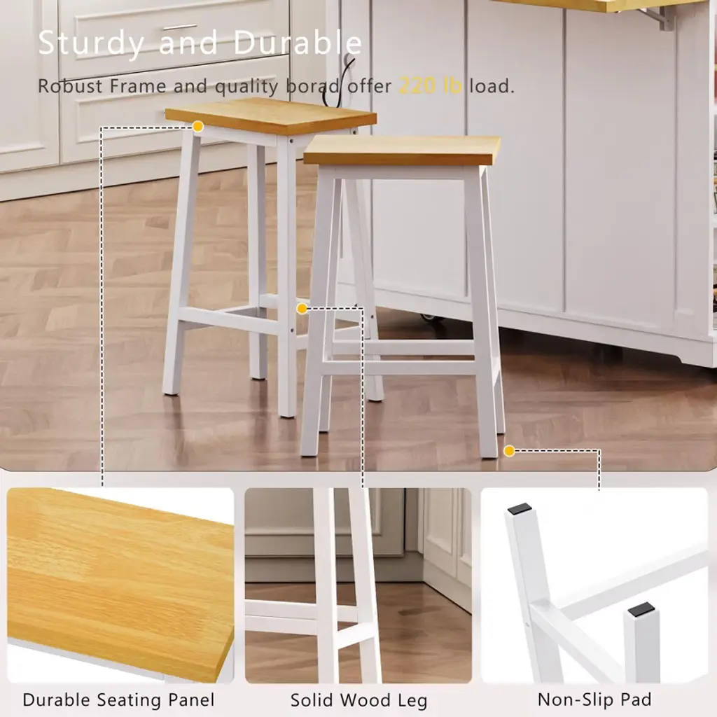 The 3-piece kitchen island set fuses classic style, high-end details, and versatile storage. Crafted from CARB Phase II certified MDF boards, its 50''-wide countertop features a smooth, scratch-proof laminate finish table that's great for food prep. The island includes an abundance of storage options: Two cabinets contain 2-tier door interior storage rack for spice and jars, while 2 side open shelves with bamboo sticks specifically designed for organizing spices,bottles and wine. Power outlet and towel racks on same side add another level of functionality. Plus, it comes with two included chair stools that let you settle in for daily breakfast or weekend brunch.