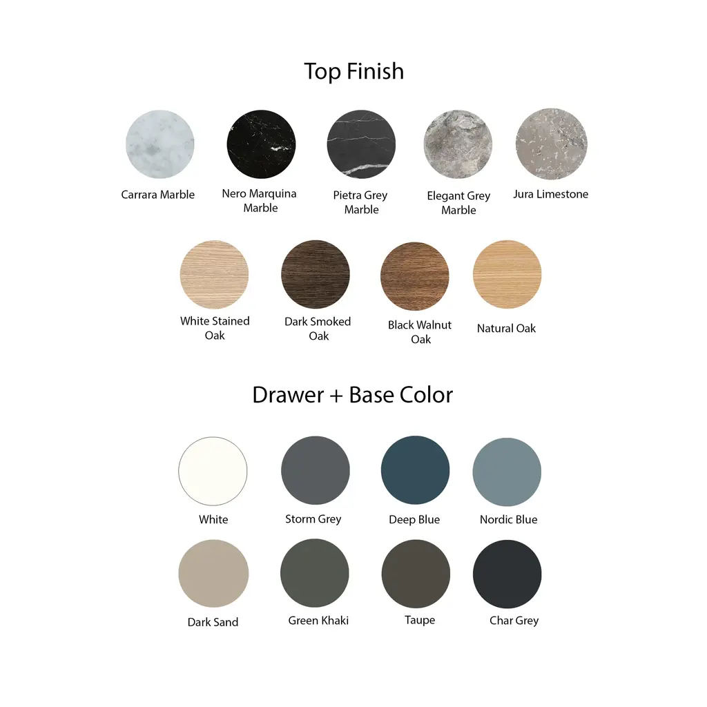 Stockholm-based designers Mats Broberg and Johan Ridderstråle adapt their Luc 160 storage template as a sophisticated sideboard for Swedish minimalist brand Asplund. With a luxe inset top in either marble and limestone, the cabinet is fashioned in solid oak with a choice of stained finishes. The sleek unit is perched on a slimline metal base with a powder coat finish in a range of hues—from neutral shades to bolder accent tones.