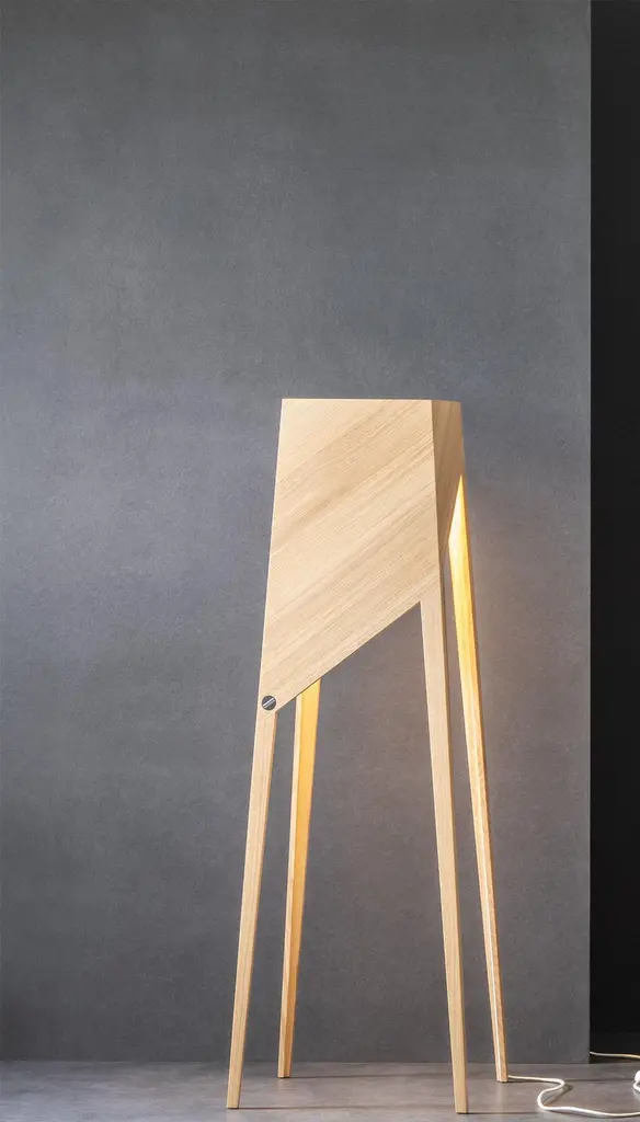 Luise floor lamp by Matthias ScherzingerDimensions: H 140 x 48 cmMaterials: oak: white lyed, oilAll our lamps can be wired according to each country. If sold to the USA it will be wired for the USA for instance.Large, medium and small sizes are available:L H 185 x 55 cmM 140 x 48 cmS 58 x 39 cmAlso available oak: black stained hard wax.LED 15 Wattcolour temperature 3.000 Kelvinlong life-time 50.000 houtput / LED 1.230-1.830 Lumentextile cable 3 m white / blackdimmable by use of pedal buttonLuise is a solid wood stand-alone lamp. She presents a self-assured pure expression of form by her seamless transition from her lamp shade to the supporting base. The radiant white kern provides for a delicate and ambient lighting.Luise blends easily into any environment at the same time offering a useful storage surface on her lampshade. Luise sets a specific accent and is an absolute eye-catcher. In her design we paid particular attention to a pristine naturalness and an ergonomic employment of materials.The lamp family comprises three individual objects.It all began in Glottertal, Germany. Born in 1978, Matthias developed early on a deep connection to nature and culture during his childhood. This was supported by the family‘s farming business (field, forest, vineyard, grassland). So, his rootedness in tradition and home arose early. Then, the handling of wood was restricted to the maintenance and care of the family forest.During school, Matthias’ strengths soon became visible. These all happened to be of the artistic kind. Driven by his practical nature, he was destined to start working in skilled crafts and trades after graduation. So in 1999, he decided to start an apprenticeship as a joiner/cabinet maker. Following his first professional years, he felt like a change. Following his inner voice in search of development and self-fulfillment, he initiated a journey in search of his new self.In 2014 he returned to his origins and founded his own furniture label by the name of FREUDWERK - Design & Manufaktur.Initially, FREUDWERK was merely a design studio located in Glottertal, Germany. In the meantime, Matthias owns and operates his own factory in Reute, Germany, where he develops and crafts his creations in a very skilled, careful and elaborate way. Alongside his own collection, Matthias manufactures designs from individual customer specifications. FREUDWERK services deliver conceptualisation, prototyping and serial manufacturing, that is, a wholistic design from beginning to end.