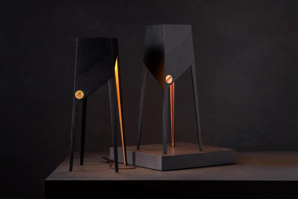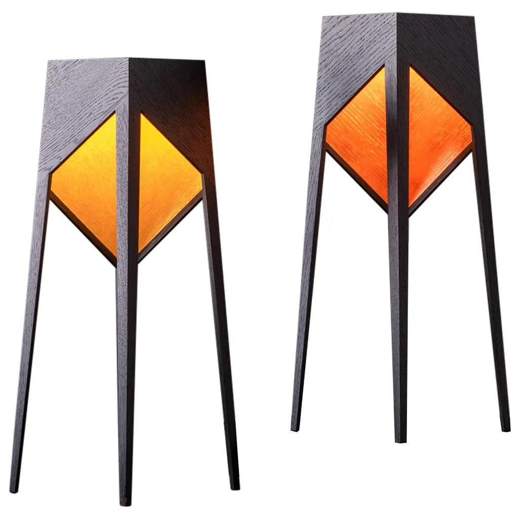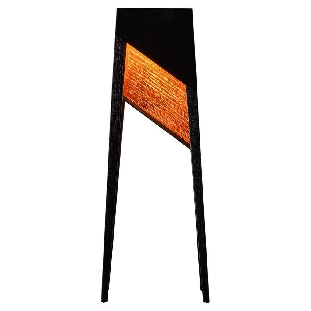 Luise LTD Baby floor lamp by Matthias Scherzinger.Limited Edition of 2. Dimensions: H 46.5 x 18 cm.Materials: solid wood - oak black stained hard wax. Inside Surface: GOLD: gold leaf 23.5 kt.All our lamps can be wired according to each country. If sold to the USA it will be wired for the USA for instance.LED 15 Wattcolour temperature 3.000 Kelvinlong life-time 50.000 houtput / LED 1.230-1.830 Lumentextile cable 3 m white / blackdimmable by use of pedal buttonLuise is a solid wood stand-alone lamp. She presents a self-assured pure expression of form by her seamless transition from her lamp shade to the supporting base. The radiant white kern provides for a delicate and ambient lighting.Luise blends easily into any environment at the same time offering a useful storage surface on her lampshade. Luise sets a specific accent and is an absolute eye-catcher. In her design we paid particular attention to a pristine naturalness and an ergonomic employment of materials.The lamp family comprises three individual objects.It all began in Glottertal, Germany. Born in 1978, Matthias developed early on a deep connection to nature and culture during his childhood. This was supported by the family‘s farming business (field, forest, vineyard, grassland). So, his rootedness in tradition and home arose early. Then, the handling of wood was restricted to the maintenance and care of the family forest.During school, Matthias’ strengths soon became visible. These all happened to be of the artistic kind. Driven by his practical nature, he was destined to start working in skilled crafts and trades after graduation. So in 1999, he decided to start an apprenticeship as a joiner/cabinet maker. Following his first professional years, he felt like a change. Following his inner voice in search of development and self-fulfillment, he initiated a journey in search of his new self.In 2014 he returned to his origins and founded his own furniture label by the name of FREUDWERK - Design & Manufaktur.Initially, FREUDWERK was merely a design studio located in Glottertal, Germany. In the meantime, Matthias owns and operates his own factory in Reute, Germany, where he develops and crafts his creations in a very skilled, careful and elaborate way. Alongside his own collection, Matthias manufactures designs from individual customer specifications. FREUDWERK services deliver conceptualisation, prototyping and serial manufacturing, that is, a wholistic design from beginning to end.
