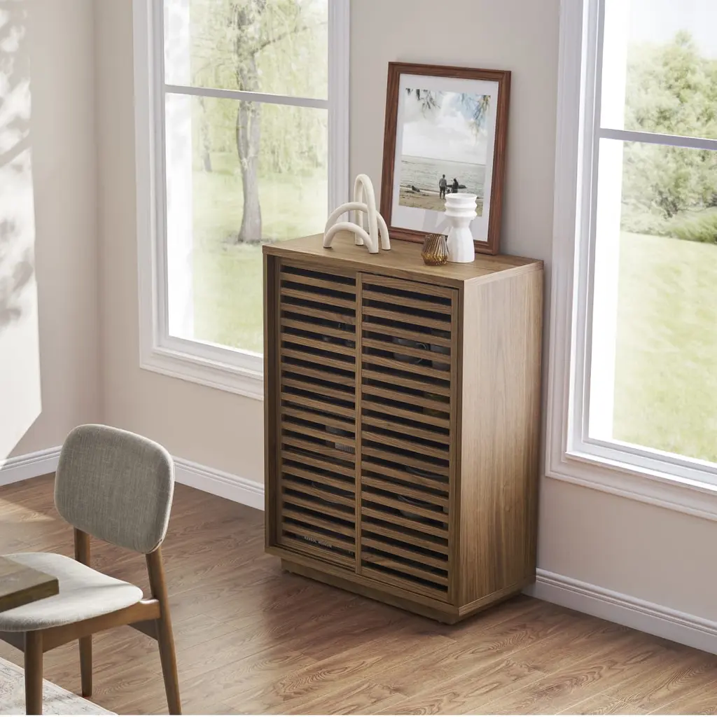 Luka's iconic slatted doors bring a beautiful form and well-ventilated function for your storage needs.
