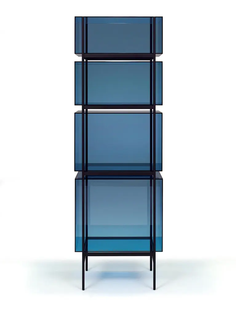 Lyn High Grey Black Cabinet by PulpoDimensions: D60 x W45 x H185 cmMaterials: glass; powder coated steelAlso available in different colours.Studio Visser & Meijwaard describe their conception of lyn as a “graphic interplay between glass and the metal frameworks”. The doorless and diverse series of cabinets and high boards are equivalent to the designers’ ambition to rethink established forms, like they did in their past as fashion designers. The reduction to the absolute essential form opens a free interplay of material and colour. Depending on the lighting conditions, the viewer’s perspective and arrangement it casts the utmost of diverse highlights. Each piece is created from coloured glass.Pulpo is a design editor for high-end products in the home sector.Design is our passion. Art is our engine. We are fascinated by the craft of the ceramic and glassblowing workshops and are guided by the rough aesthetics of these unique pieces.Pulpo’s philosophy goes back to the idea of the “carte blanche”. Our designers and artists develop their designs freely and experimentally. A variety of materials and a weakness for structures are our strengths.The headquarters of pulpo is in Weil am Rhein, near the Swiss border. Consisting of the creative and sales department, warehouse and logistics, this is the think tank for our artists and designers. pulpo’s dealer network extends far beyond Weil am Rhein – from Iceland and Dubai to Australia.Pulpo is movement – is possibility – is passion.In 2006, pulpo was founded by Ursula and Patrick L’hoste as a design brand at the interface between shape and material. pulpo’s conception is to edit lighting, furniture and accessoires on editor’s choice. The company’s focus is to conduct up-and-coming designers and selected manufacturers, using the nature of material’s to form the score. Materials such as ceramics, stone and especially glass, which is pulpo’s primary focus since 2013.
