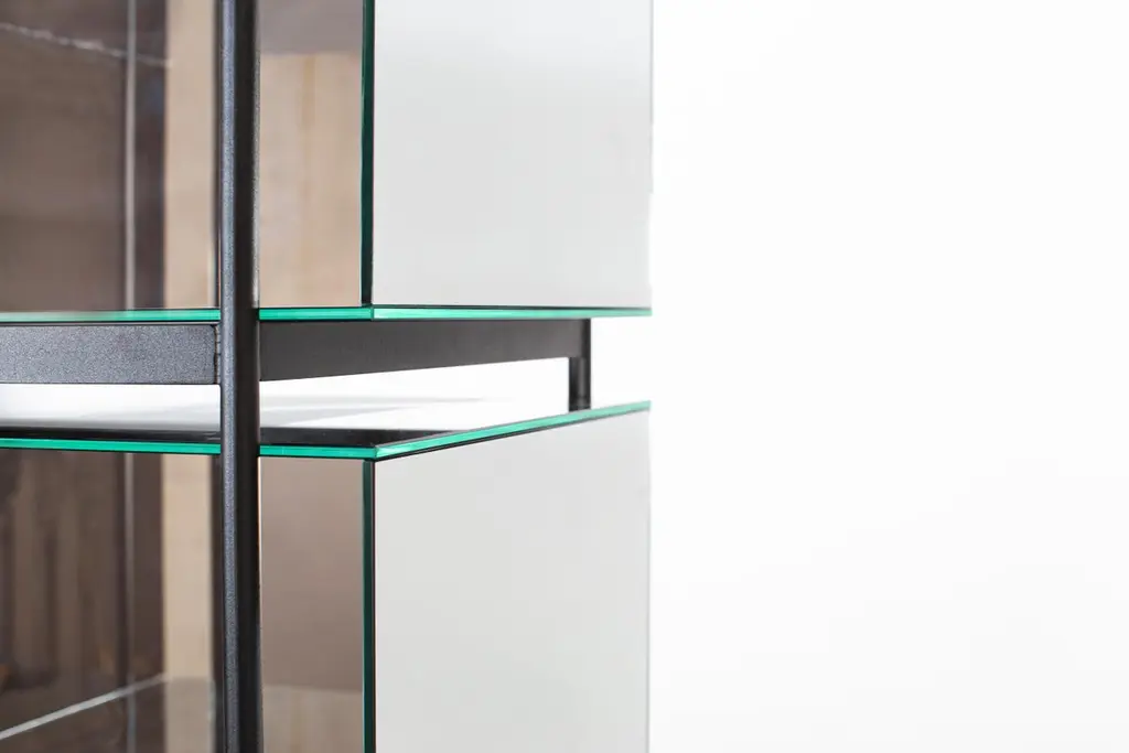 Lyn small blue black cabinet by PulpoDimensions: D60 x W45 x H110 cmMaterials: glass; powder coated steelAlso available in different colours. Studio Visser & Meijwaard describe their conception of lyn as a “graphic interplay between glass and the metal frameworks”. The doorless and diverse series of cabinets and high boards are equivalent to the designers’ ambition to rethink established forms, like they did in their past as fashion designers. The reduction to the absolute essential form opens a free interplay of material and colour. Depending on the lighting conditions, the viewer’s perspective and arrangement it casts the utmost of diverse highlights. Each piece is created from coloured glass.Pulpo is a design editor for high-end products in the home sector.Design is our passion. Art is our engine. We are fascinated by the craft of the ceramic and glassblowing workshops and are guided by the rough aesthetics of these unique pieces.Pulpo’s philosophy goes back to the idea of the “carte blanche”. Our designers and artists develop their designs freely and experimentally. A variety of materials and a weakness for structures are our strengths.The headquarters of pulpo is in Weil am Rhein, near the Swiss border. Consisting of the creative and sales department, warehouse and logistics, this is the think tank for our artists and designers. pulpo’s dealer network extends far beyond Weil am Rhein – from Iceland and Dubai to Australia.Pulpo is movement – is possibility – is passion.In 2006, pulpo was founded by Ursula and Patrick L’hoste as a design brand at the interface between shape and material. pulpo’s conception is to edit lighting, furniture and accessoires on editor’s choice. The company’s focus is to conduct up-and-coming designers and selected manufacturers, using the nature of material’s to form the score. Materials such as ceramics, stone and especially glass, which is pulpo’s primary focus since 2013.