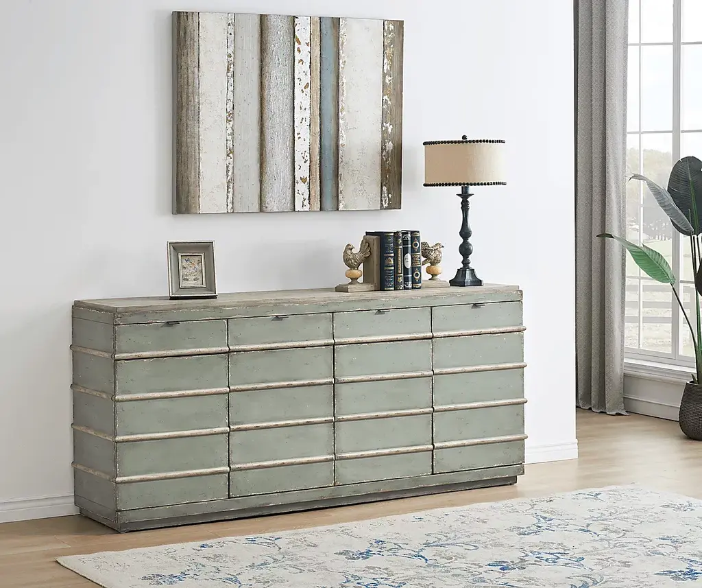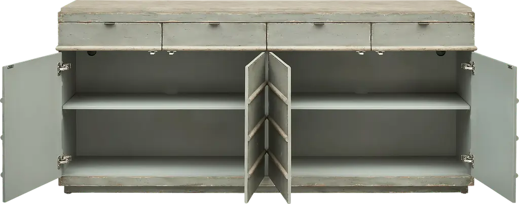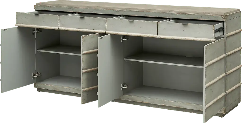 Need a statement piece for a dining or living room Look no further than this two-toned Lytleton credenza featuring four drawers and ample cabinet space to hold all of your dinnerware or electronics and consoles. This rustic plank-style piece makes a great finishing touch for any room while offering long-lasting durability you can trust. Customer assembly is required.