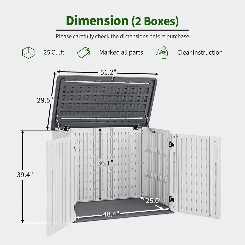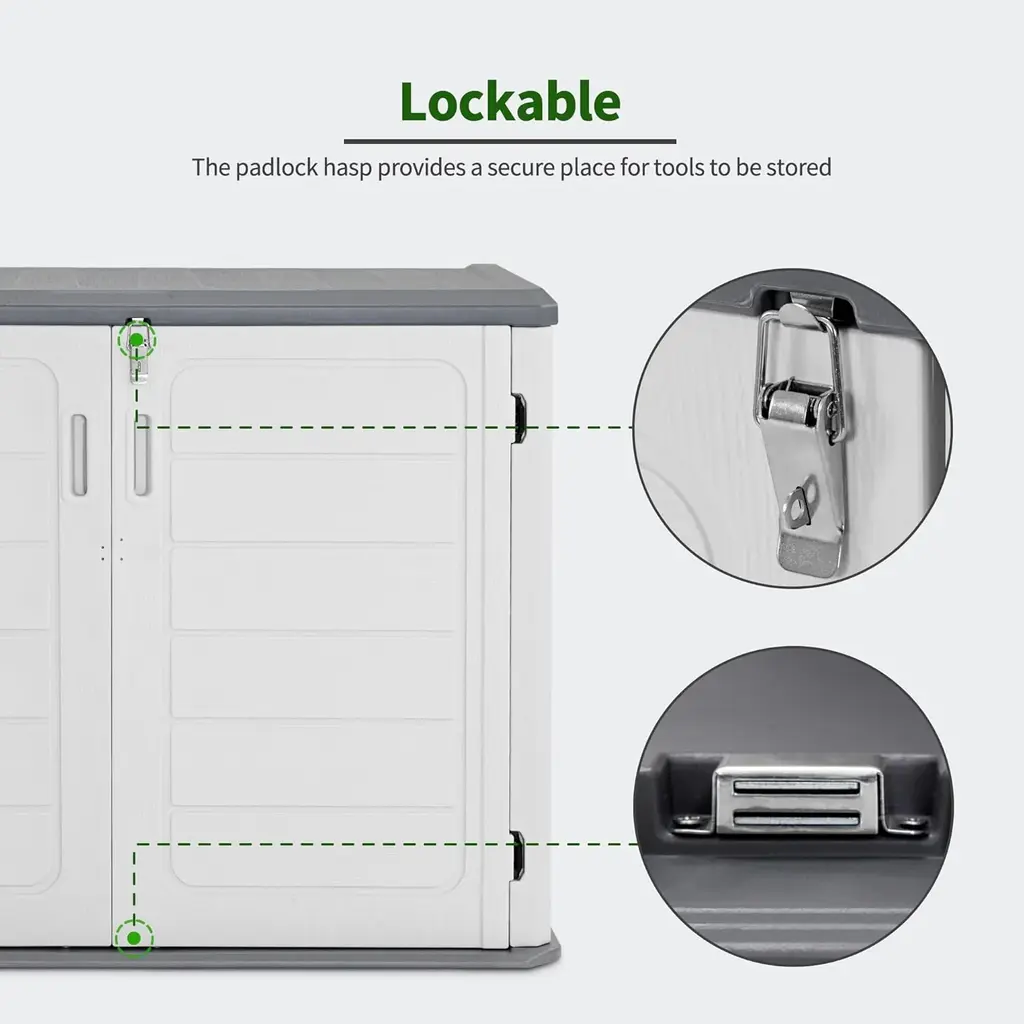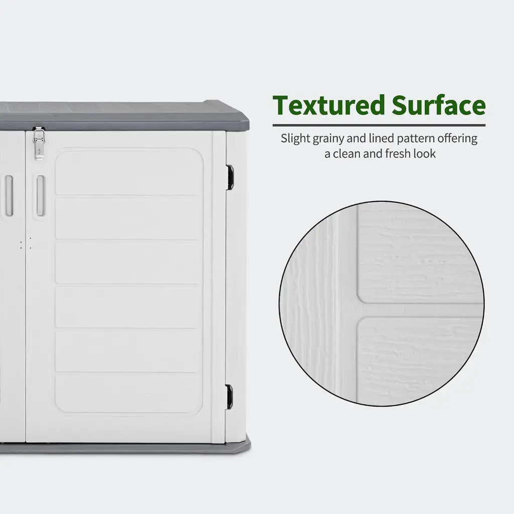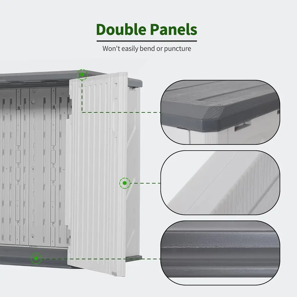 FeaturesProduct DescriptionThe plastic storage shed offers a secure and versatile outdoor storage solution, for organizing garden tools, lawn equipment, and other outdoor items. This shed is constructed with a waterproof structure, providing waterproof protection from rain. The double-panel side walls and textured surface add extra strength and visual appeal. Own this outside plastic shed, and enjoy a relaxing outdoor life!Buyer ReadingItem SpecificationsWarranty How to solve any issue of the product? Please feel free to contact us, we will reply to you within 24 hours. Our customer support doesn't end with your purchase!